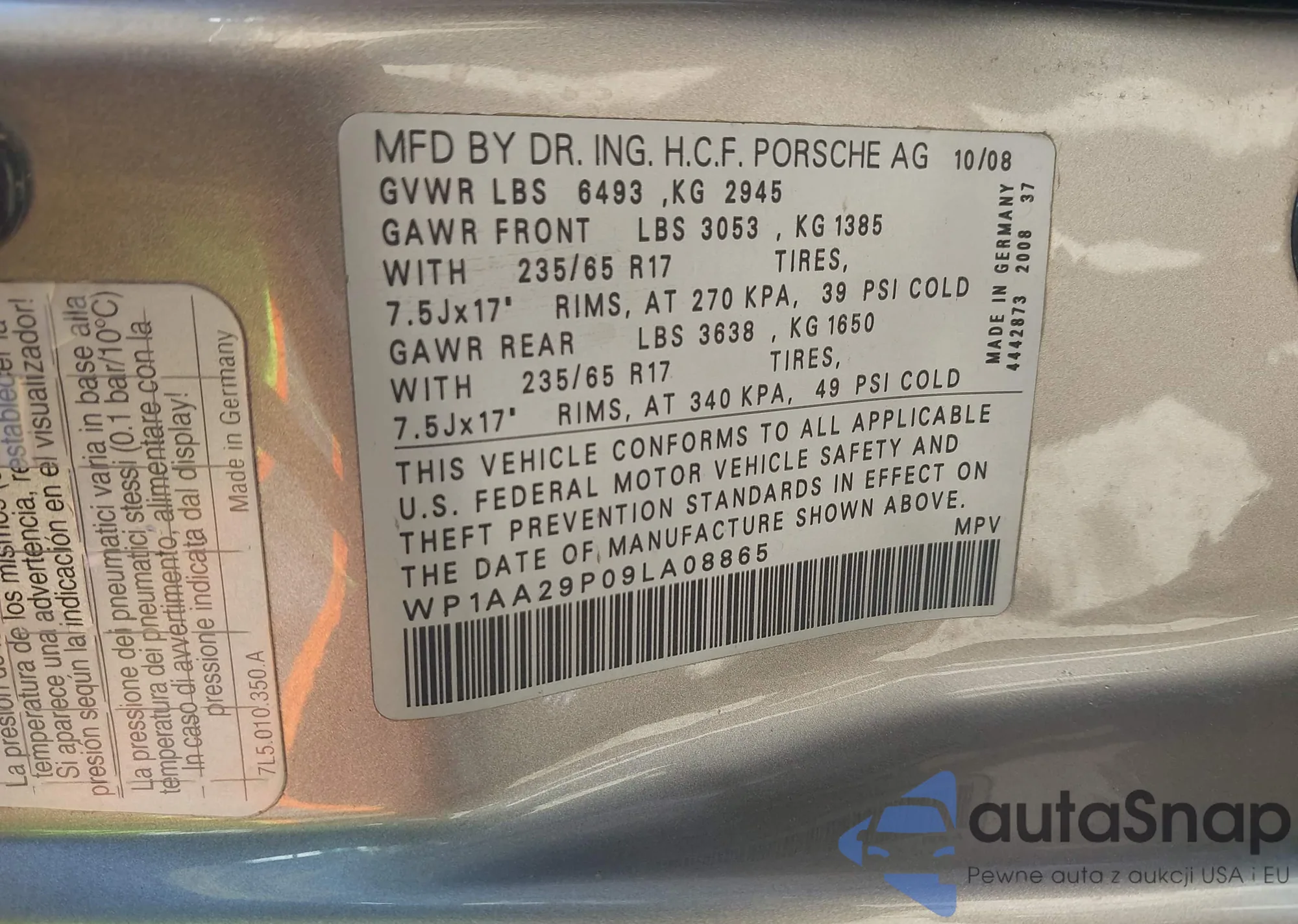 VIN: WP1AA29P09LA08865