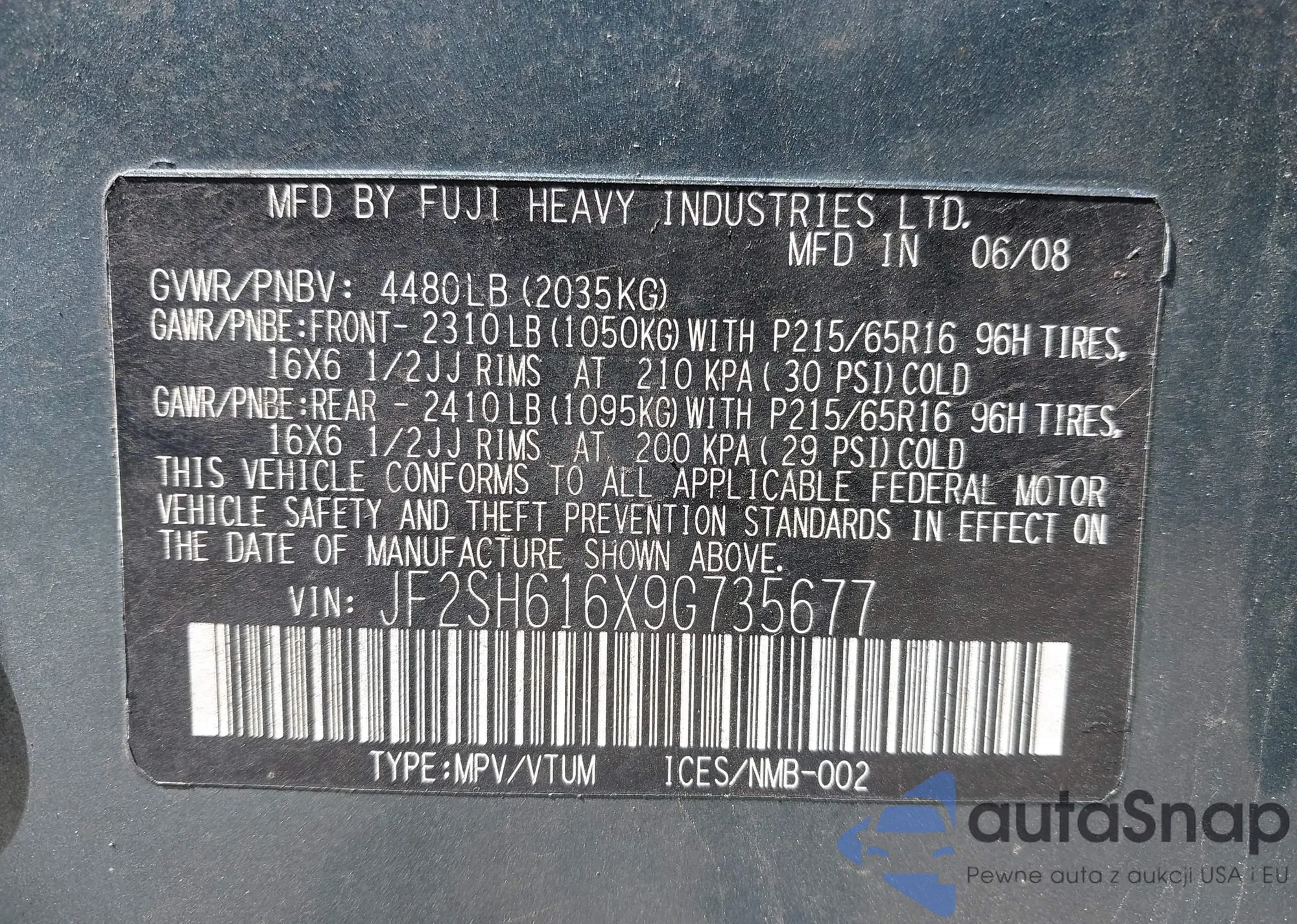 VIN: JF2SH616X9G735677