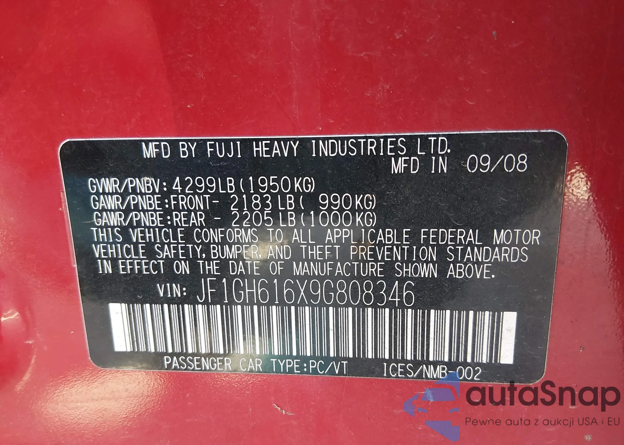 VIN: JF1GH616X9G808346