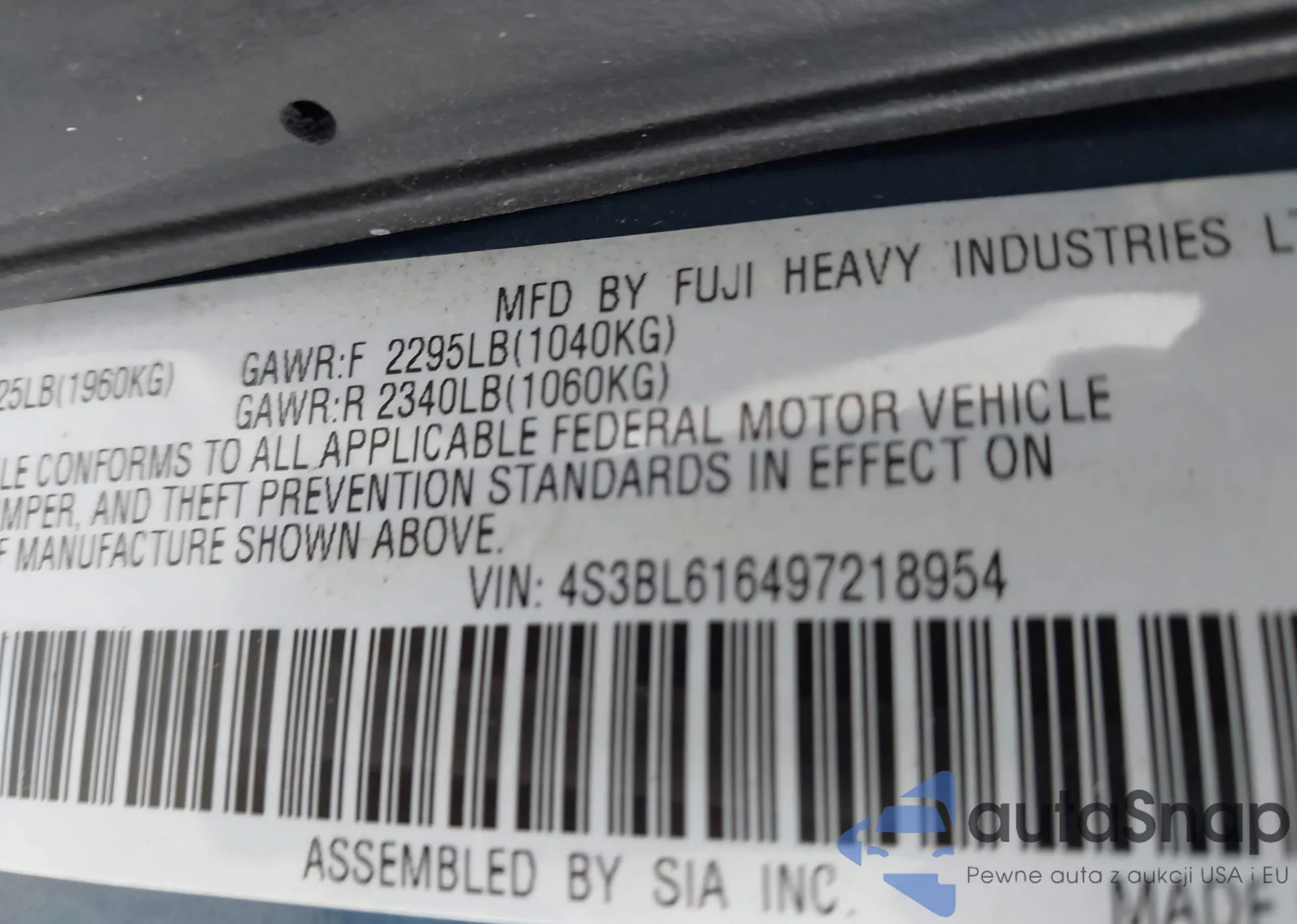 VIN: 4S3BL616497218954