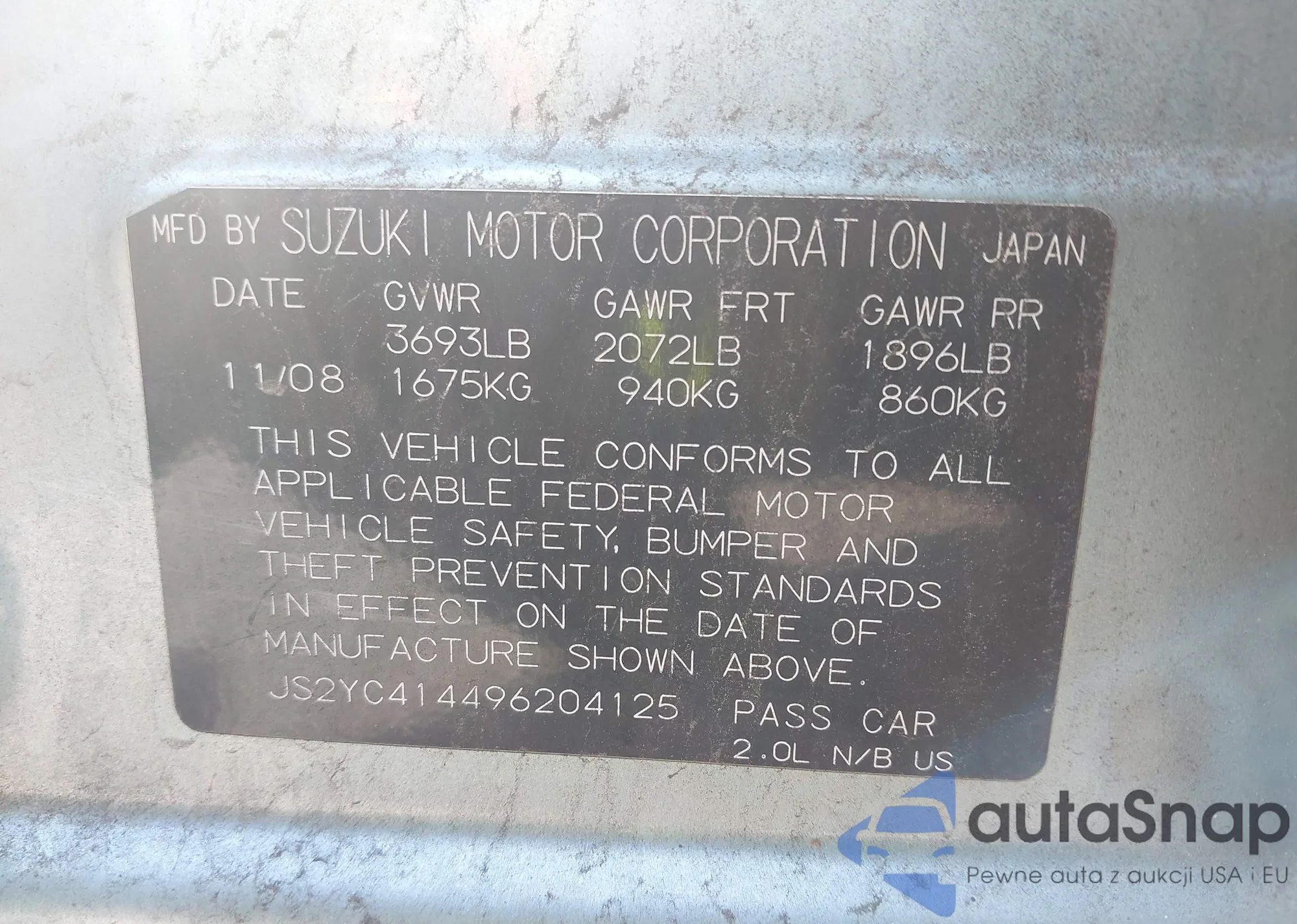 VIN: JS2YC414496204125