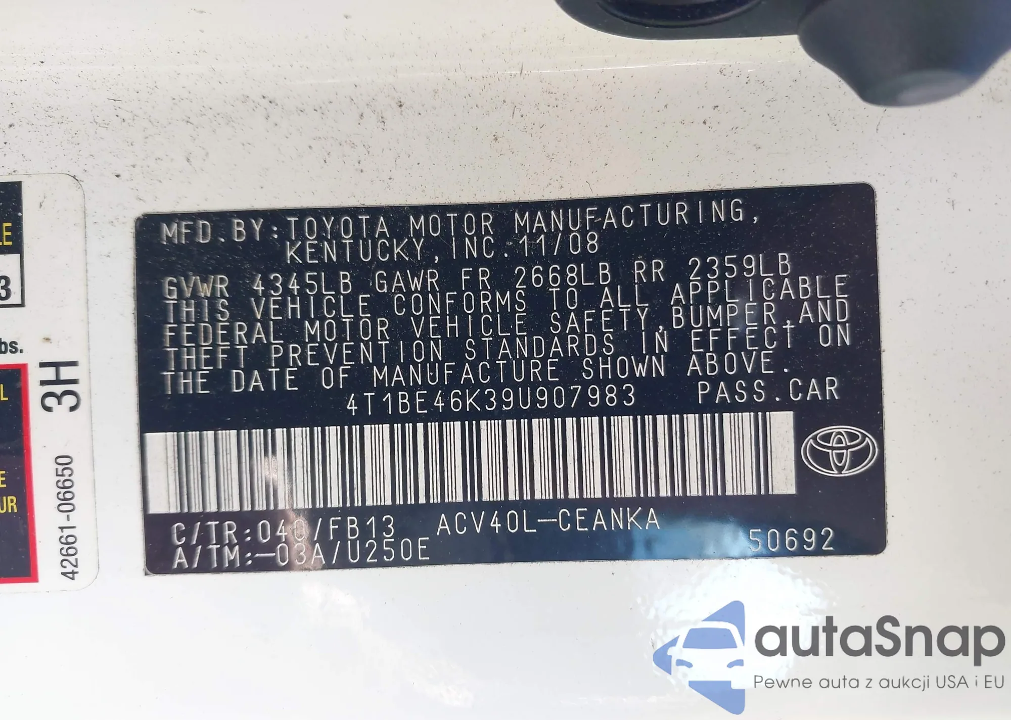 VIN: 4T1BE46K39U907983