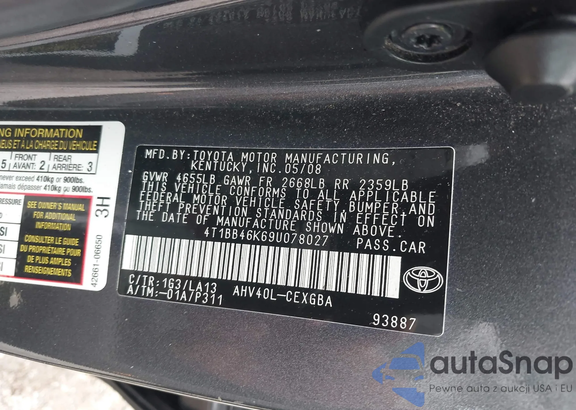 VIN: 4T1BB46K69U078027