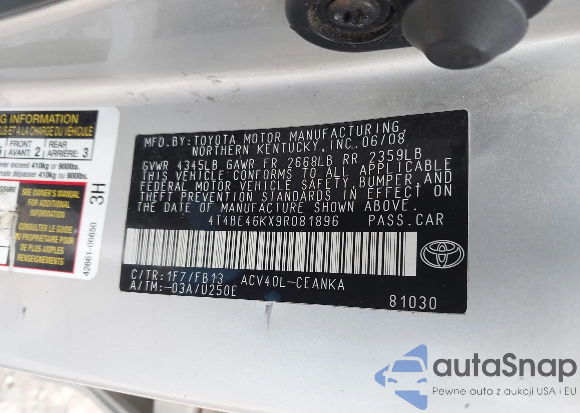 VIN: 4T4BE46KX9R081896