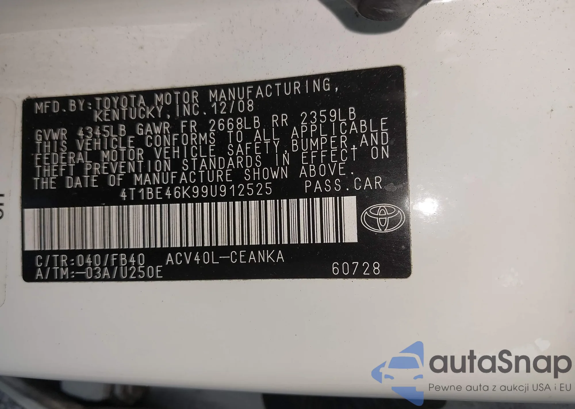 Toyota Camry 2009 – История автомобиля (продан на IAAI)