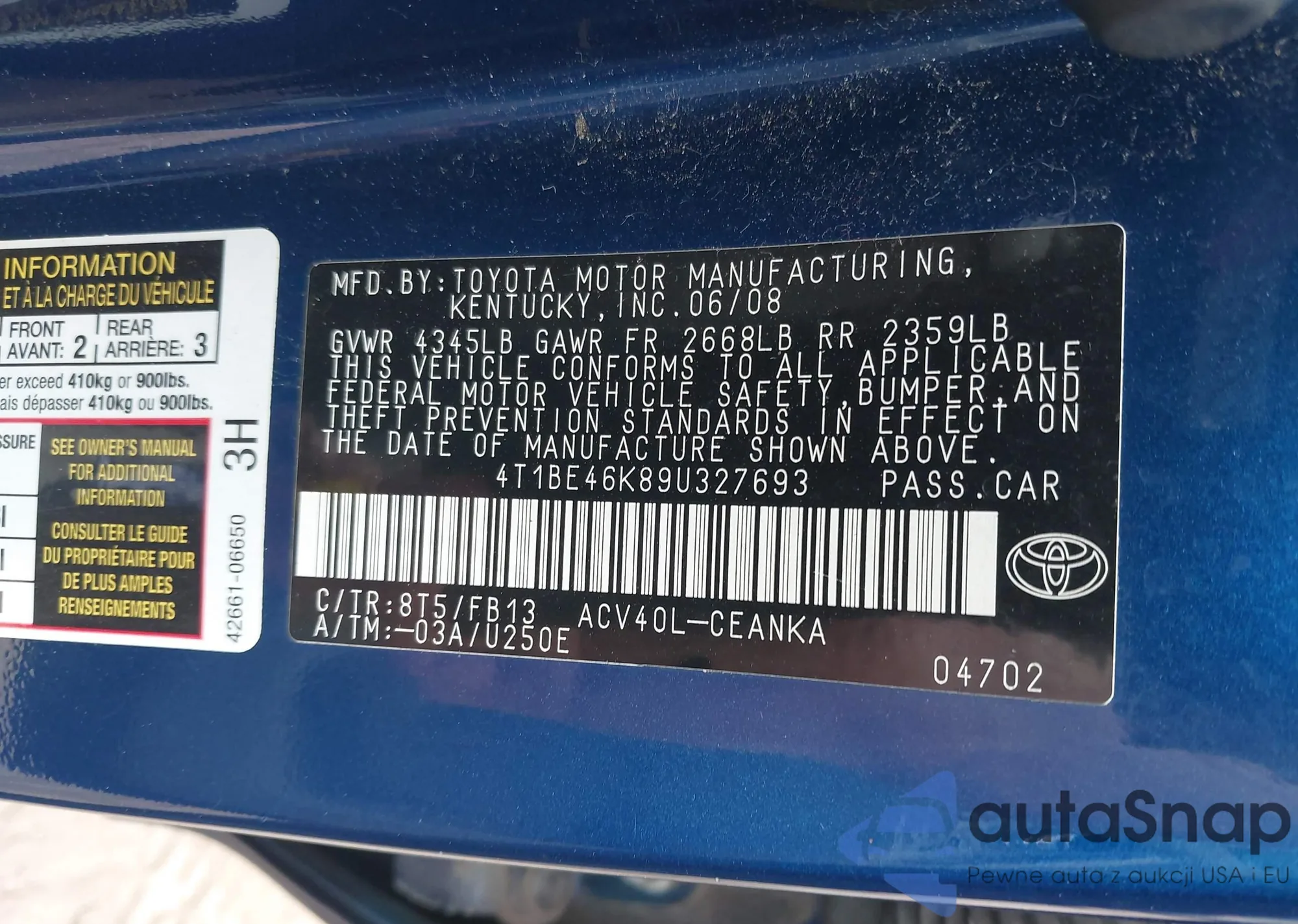 VIN: 4T1BE46K89U327693