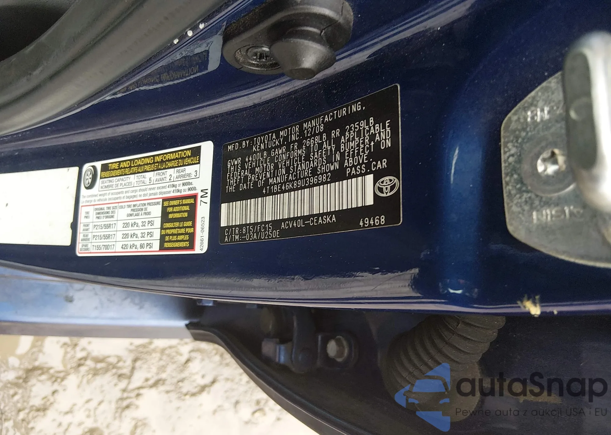 Toyota Camry 2009 – История автомобиля (продан на IAAI)