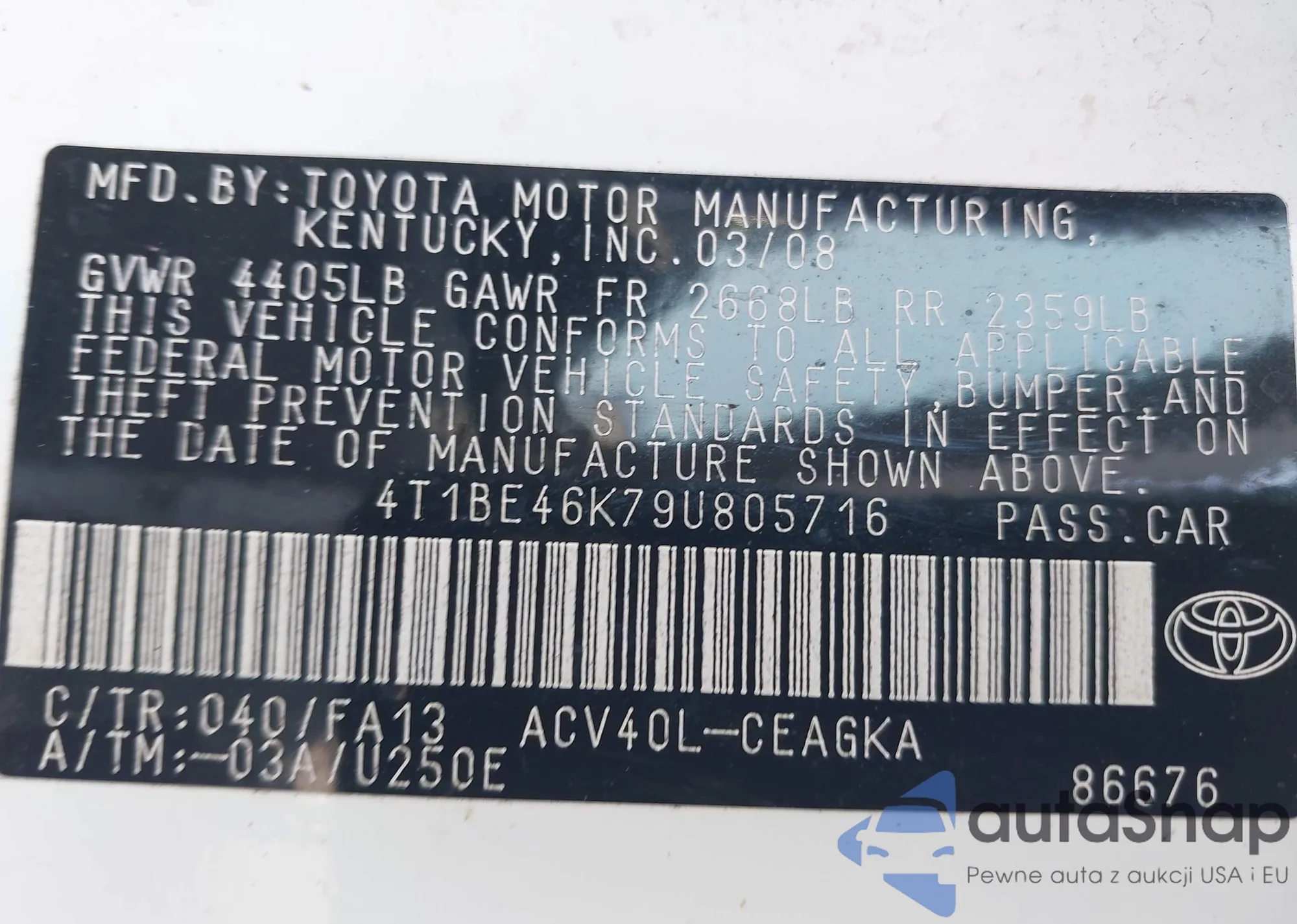 VIN: 4T1BE46K79U805716