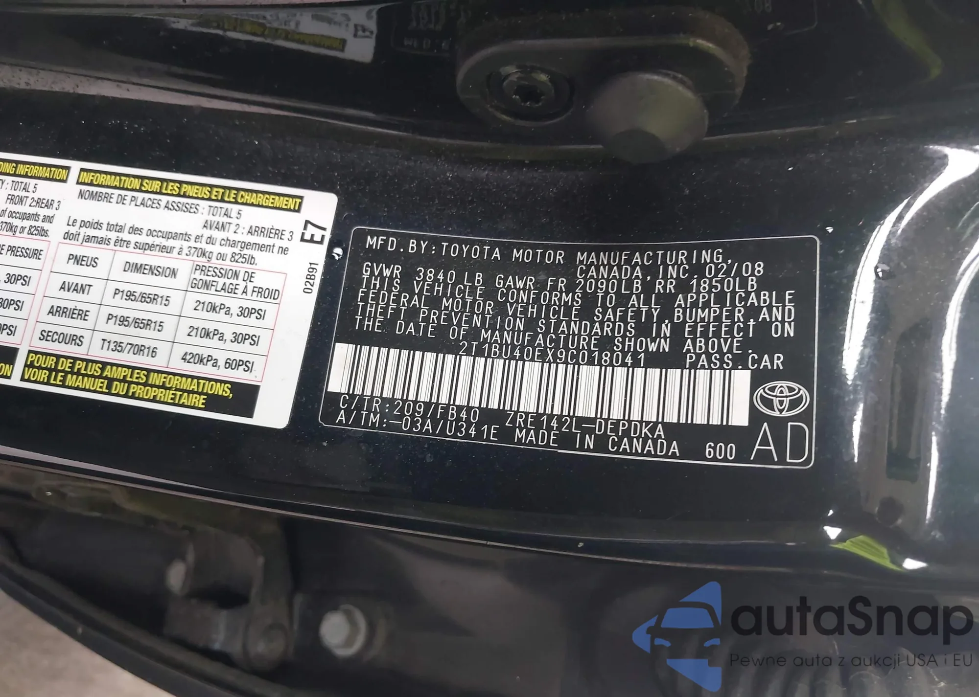 VIN: 2T1BU40EX9C018041