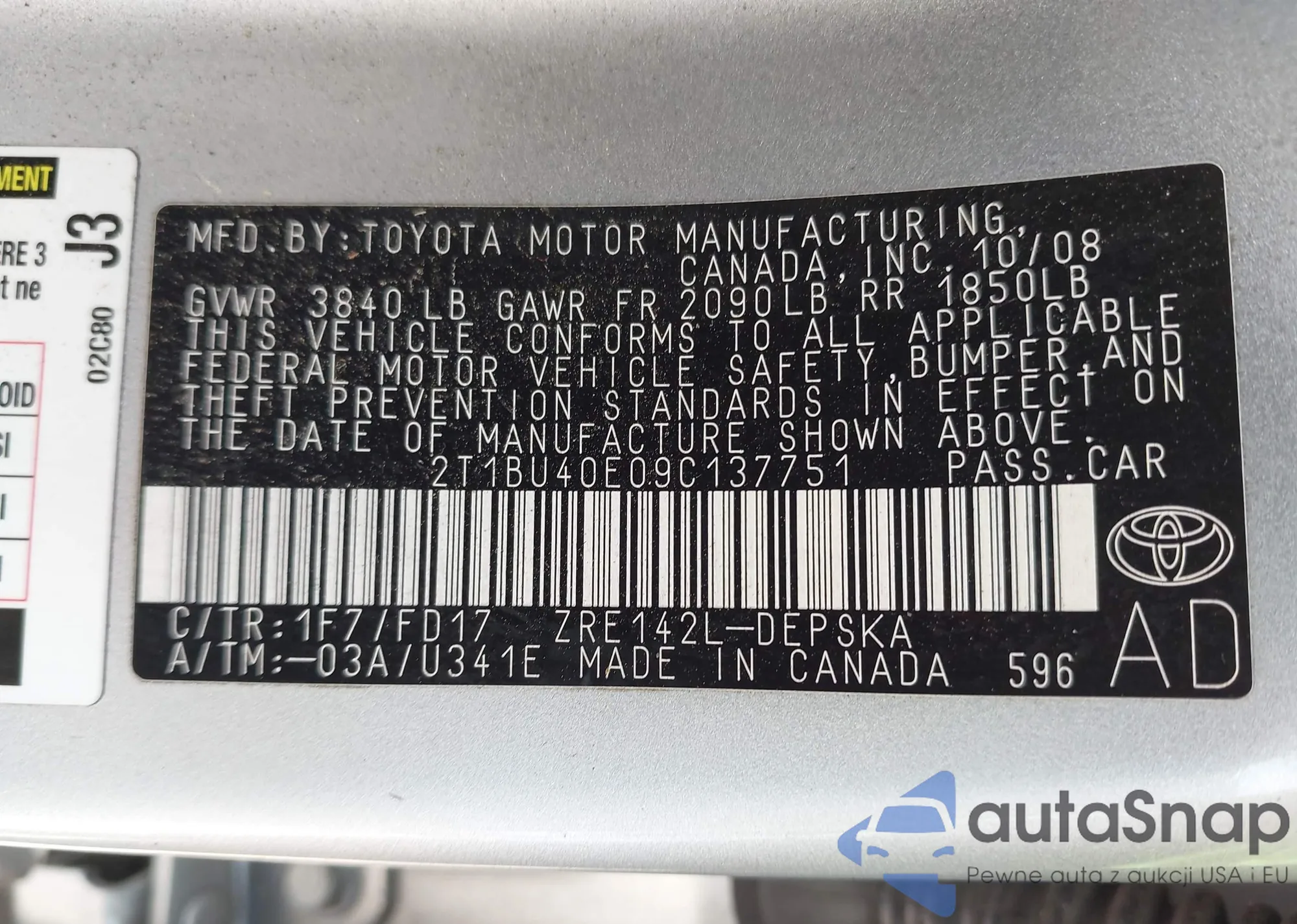 VIN: 2T1BU40E09C137751