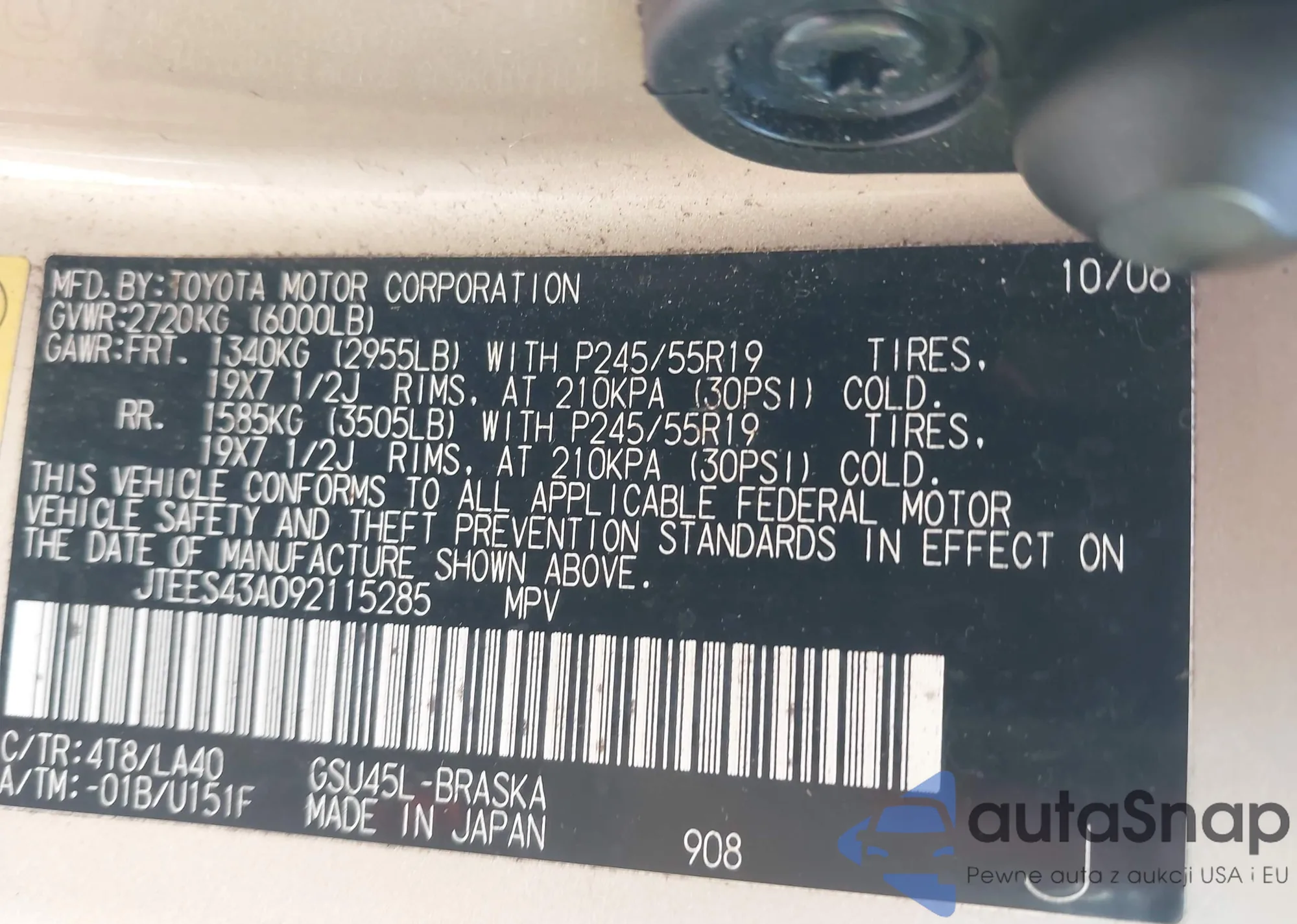 VIN: JTEES43A092115285