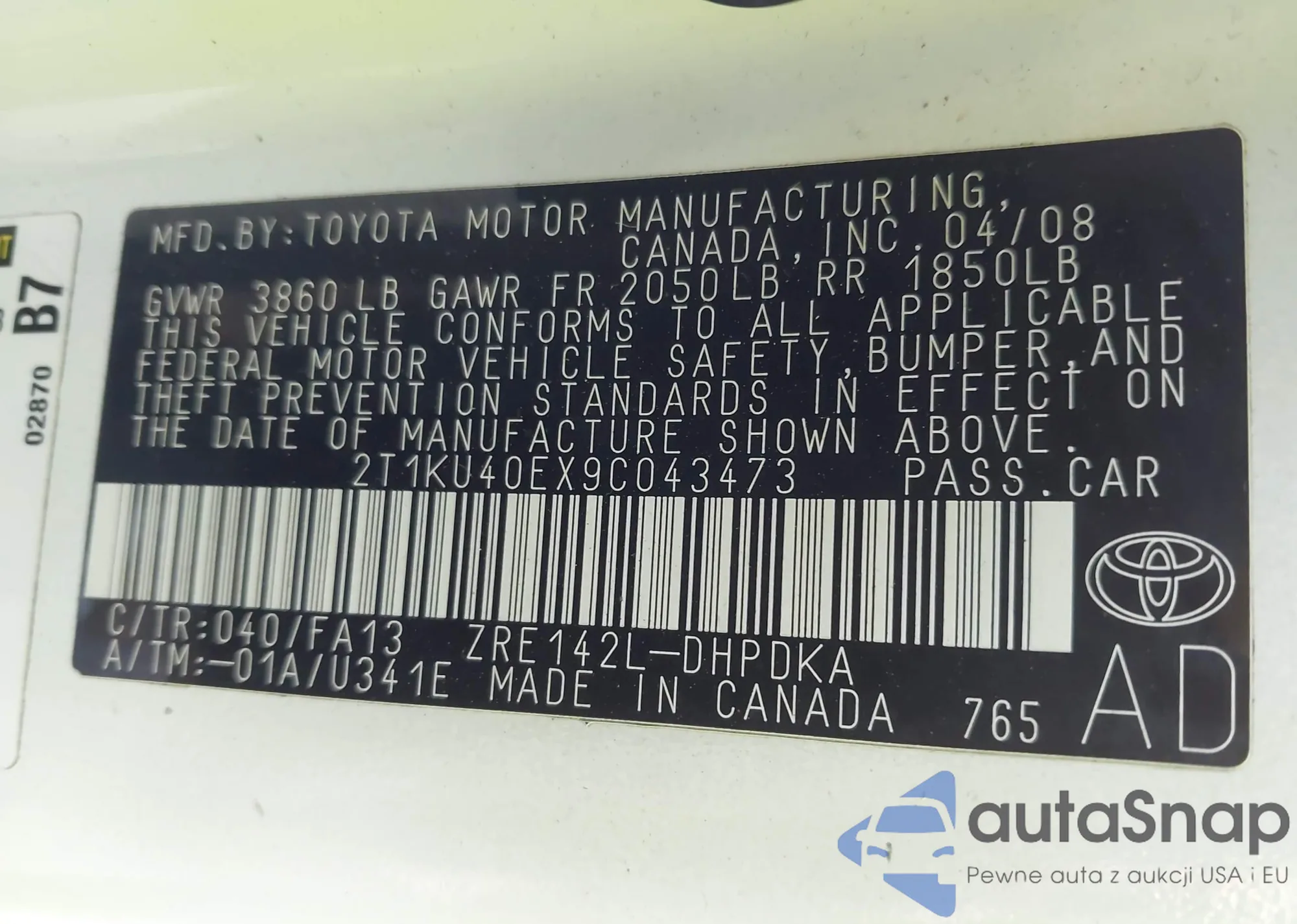 Автомобиль Toyota Matrix 2009 (VIN 2T1KU40EX9C043473) ранее не участвовал в торгах. Документы чистые, пробег соответствует или ниже среднего по рынку. Продаётся страховой компанией — рекомендуем покупку. Доставка в порт займет около 6–8 недель.