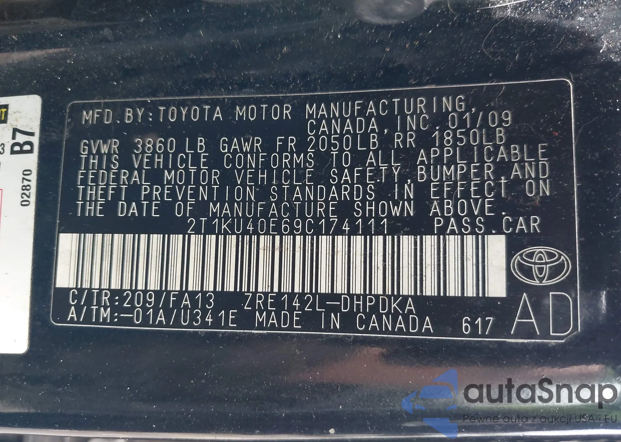 VIN: 2T1KU40E69C174111