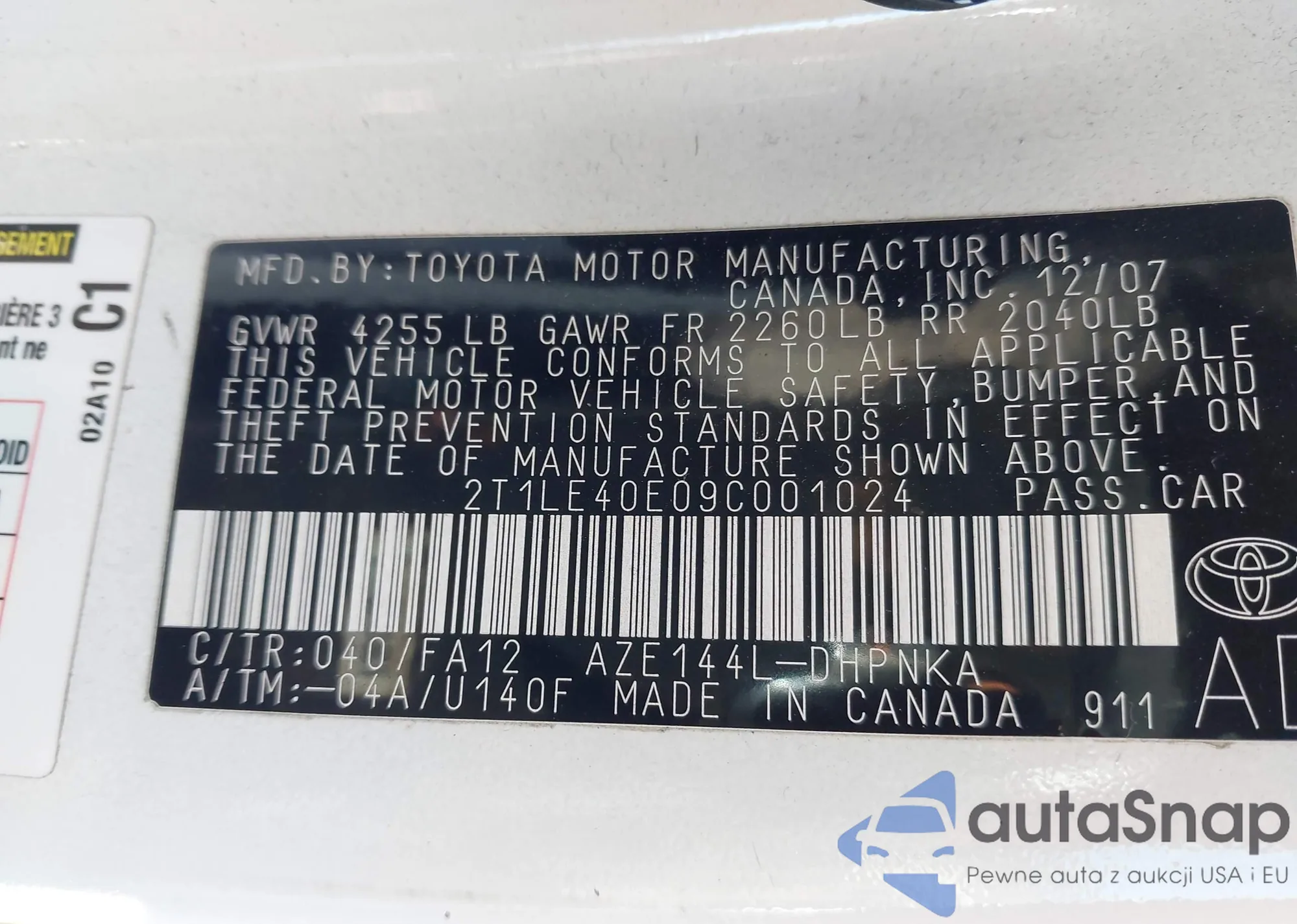 VIN: 2T1LE40E09C001024