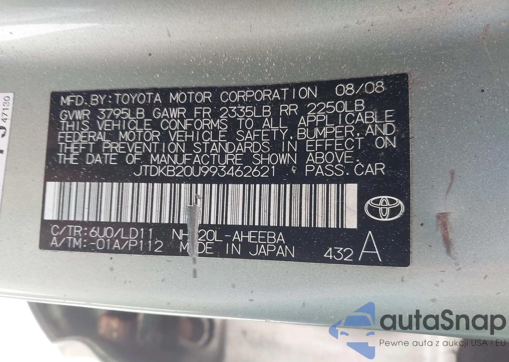 VIN: JTDKB20U993462621