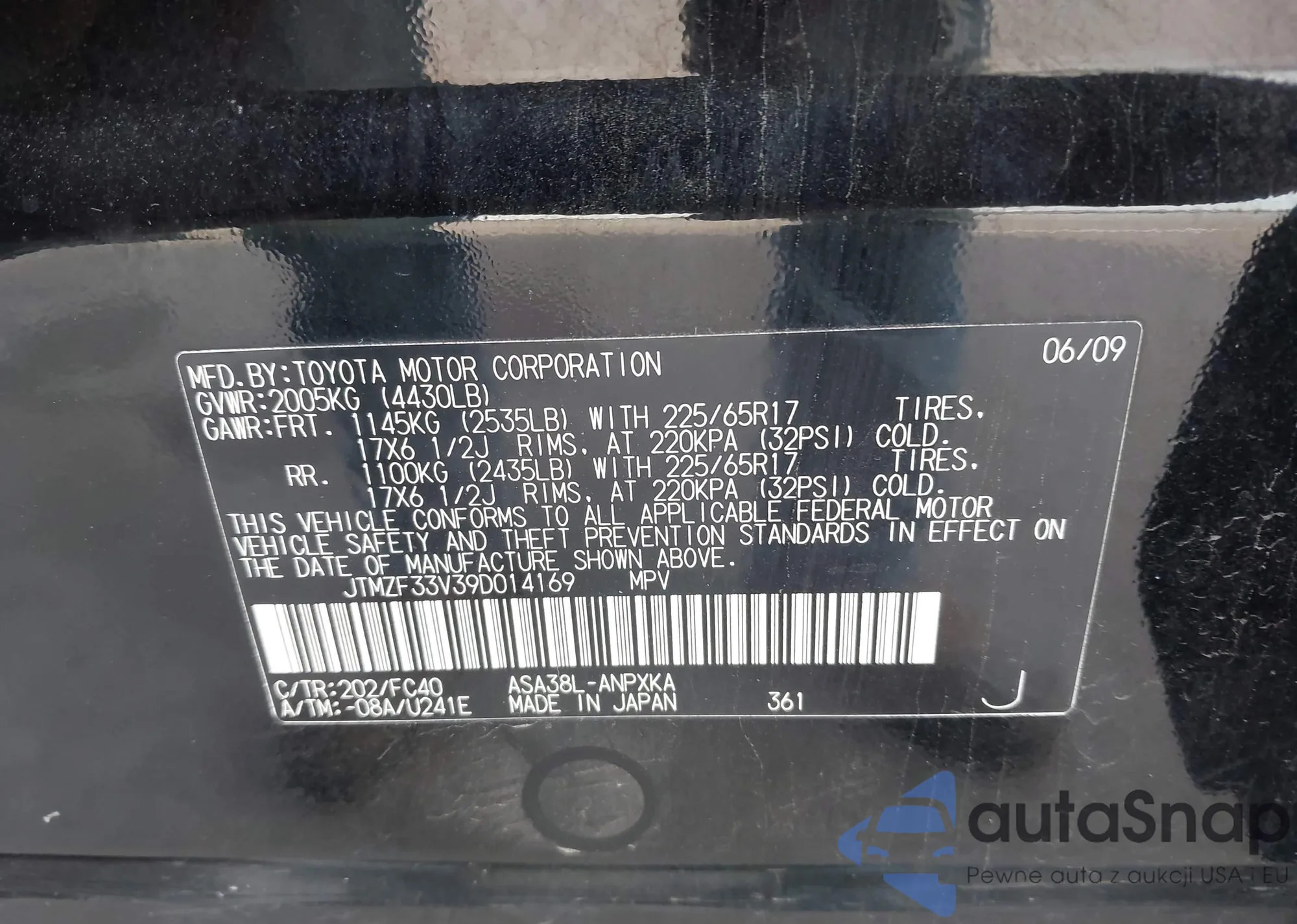 VIN: JTMZF33V39D014169