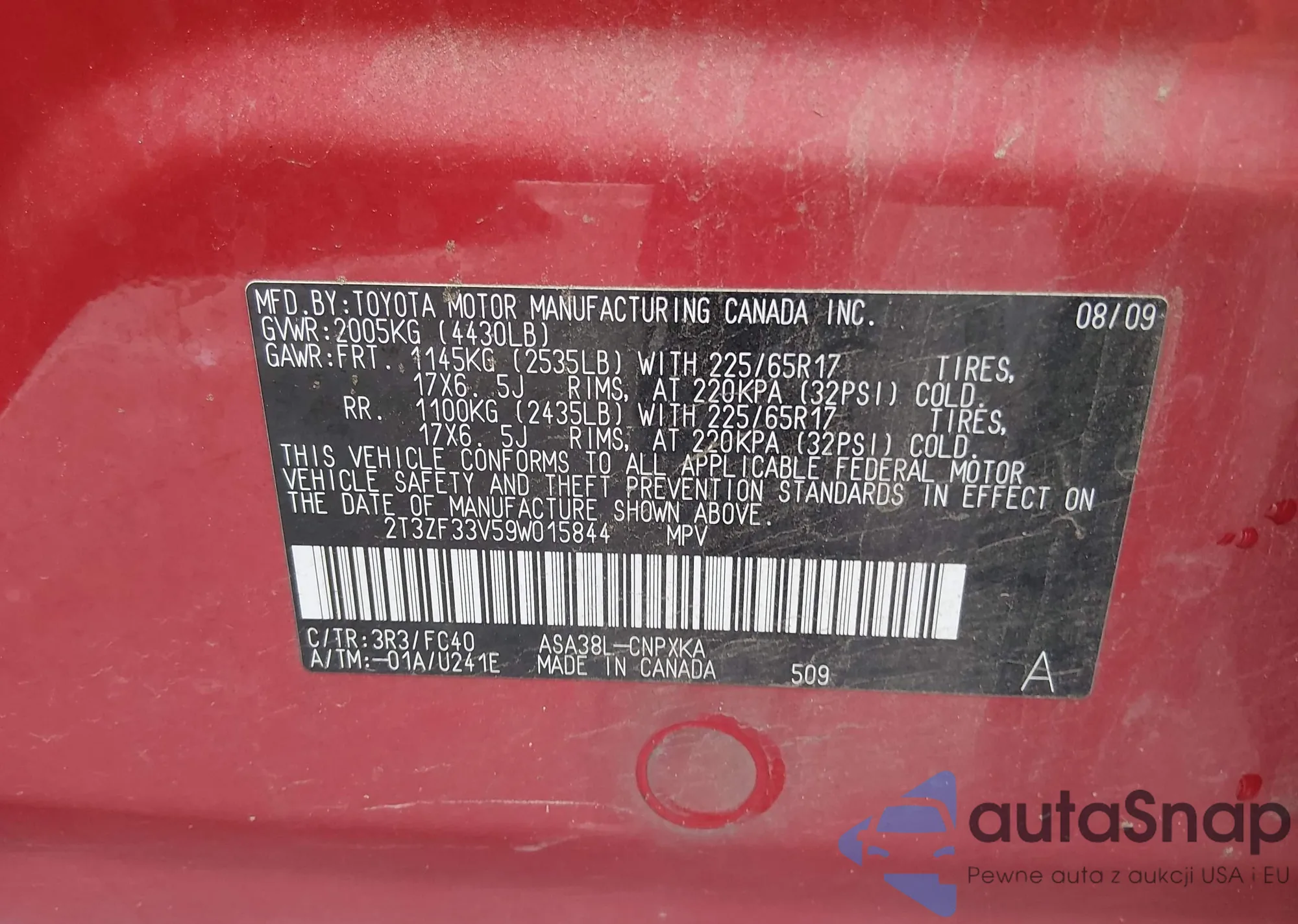 • VIN: 2T3ZF33V59W015844