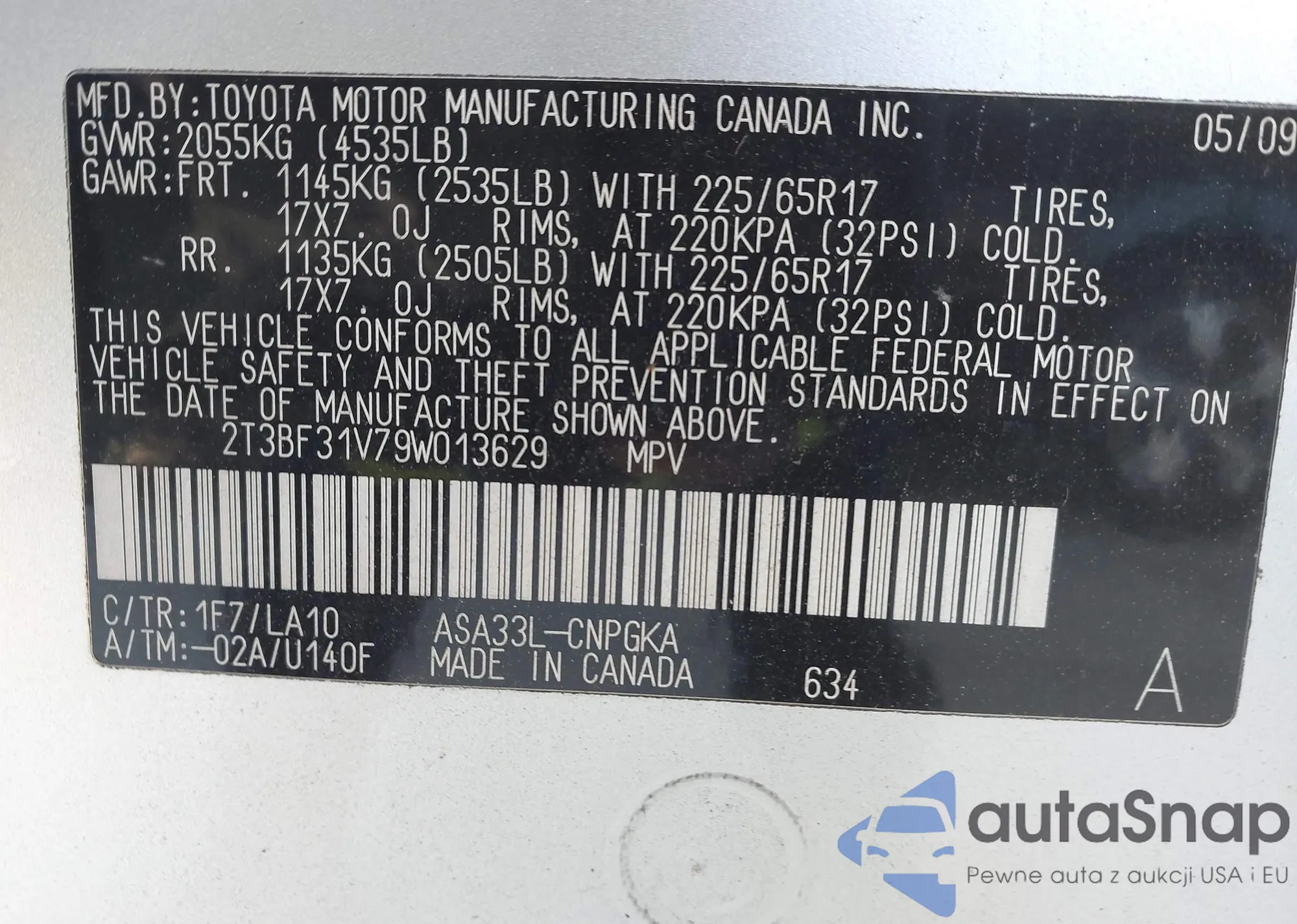 VIN: 2T3BF31V79W013629