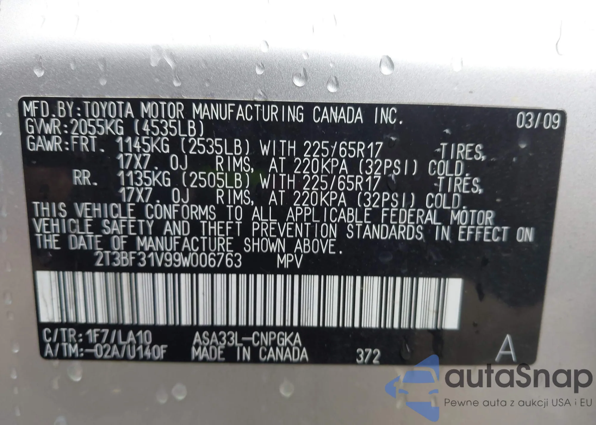 VIN: 2T3BF31V99W006763