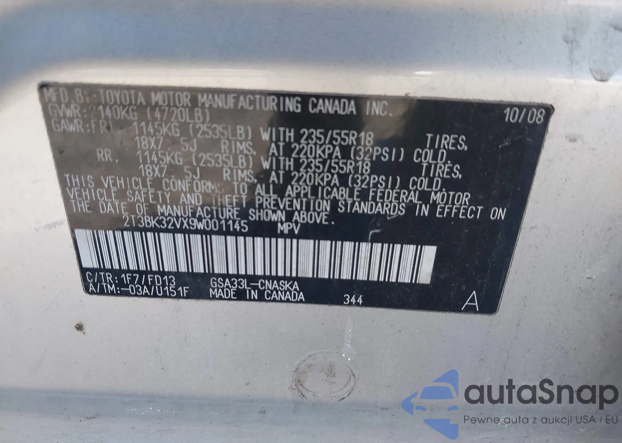 Автомобиль Toyota RAV 4 2009 (VIN 2T3BK32VX9W001145) ранее не участвовал в торгах. Документы чистые, пробег соответствует или ниже среднего по рынку. Продаётся страховой компанией — рекомендуем покупку. Доставка в порт займет около 6–8 недель.