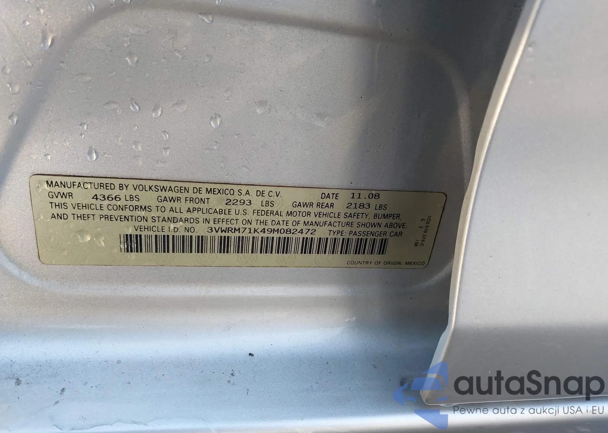 VIN: 3VWRM71K49M082472