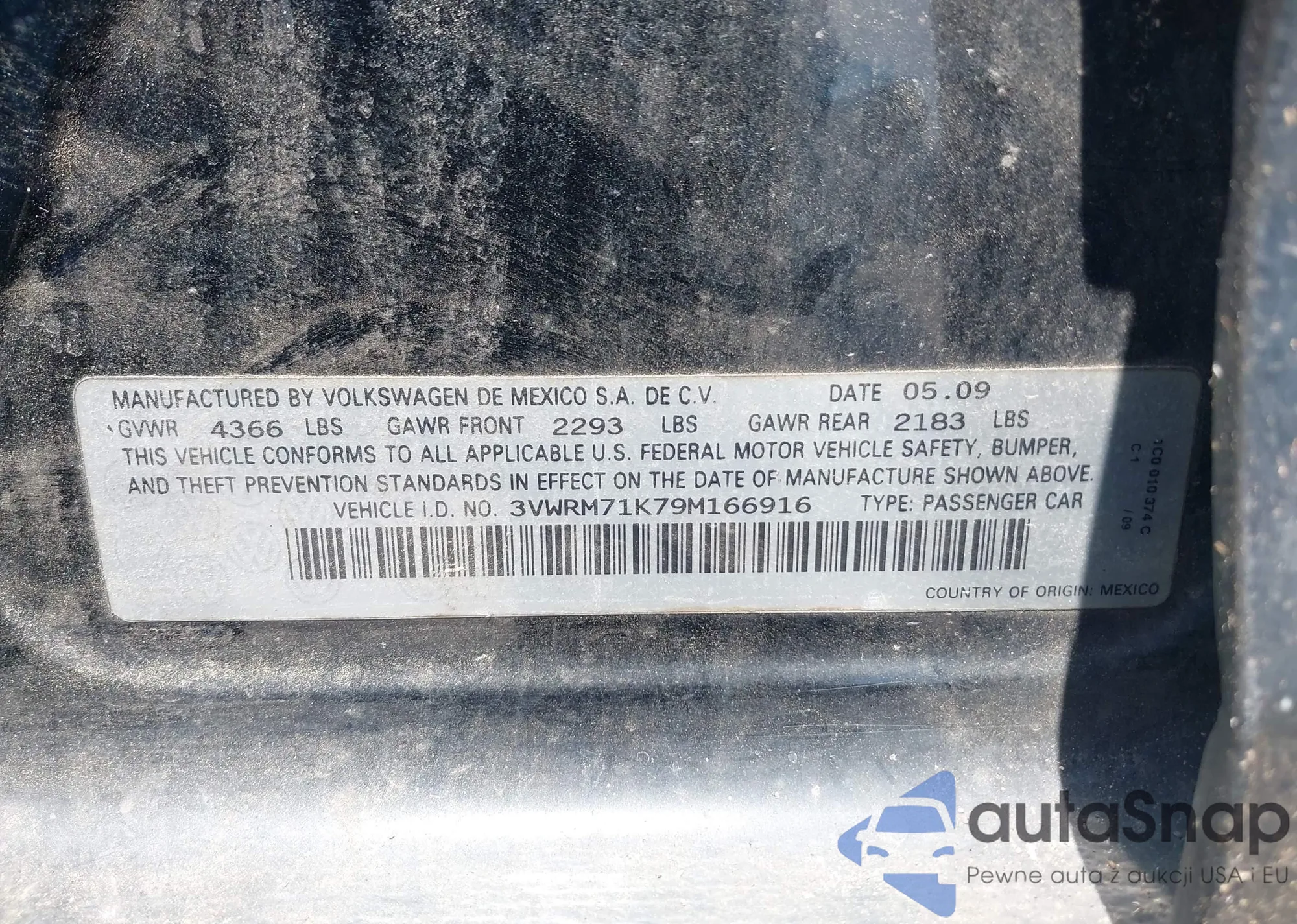 VIN: 3VWRM71K79M166916