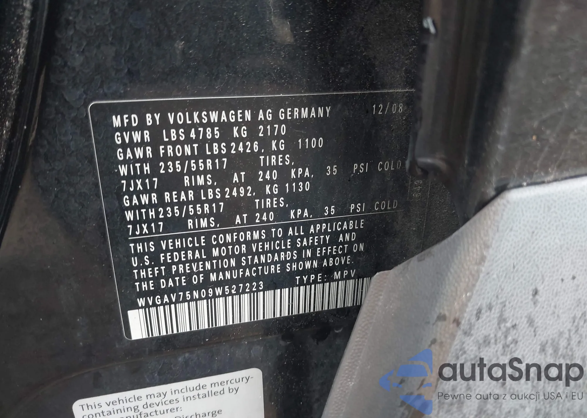VIN: WVGAV75N09W527223