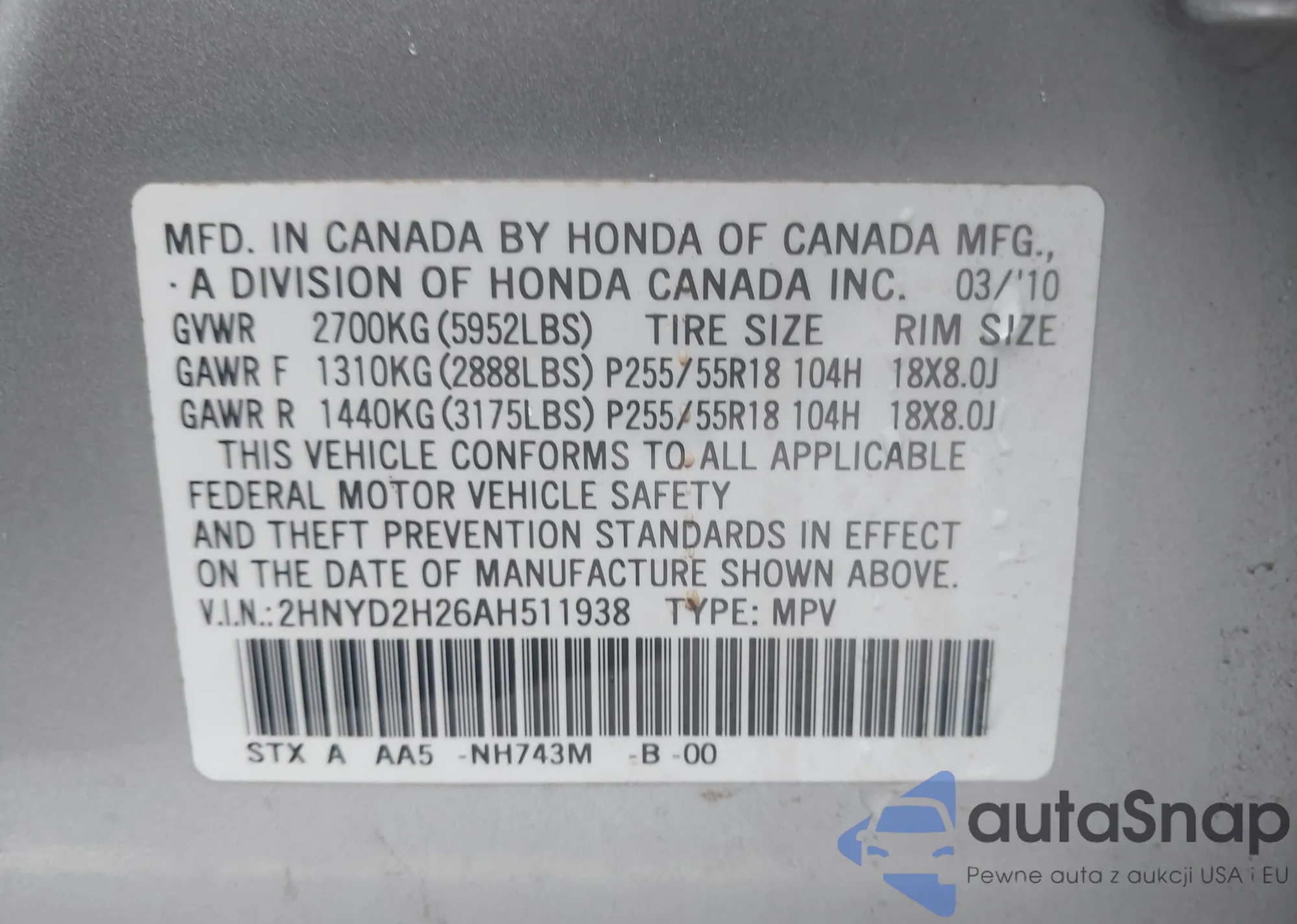 VIN: 2HNYD2H26AH511938