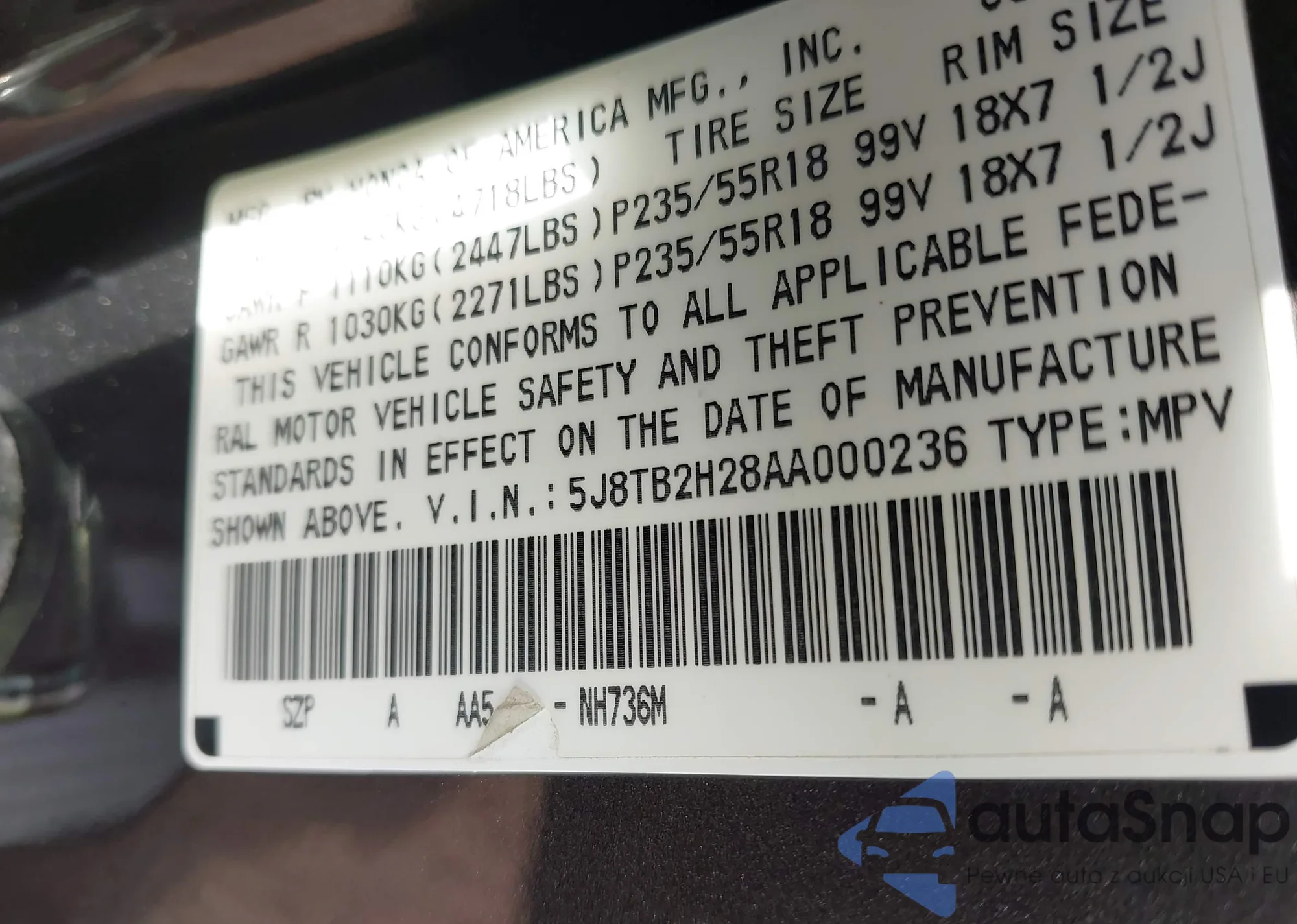 Автомобиль Acura RDX 2010 (VIN 5J8TB2H28AA000236) ранее не участвовал в торгах. Документы чистые, пробег соответствует или ниже среднего по рынку. Продаётся страховой компанией — рекомендуем покупку. Доставка в порт займет около 6–8 недель.