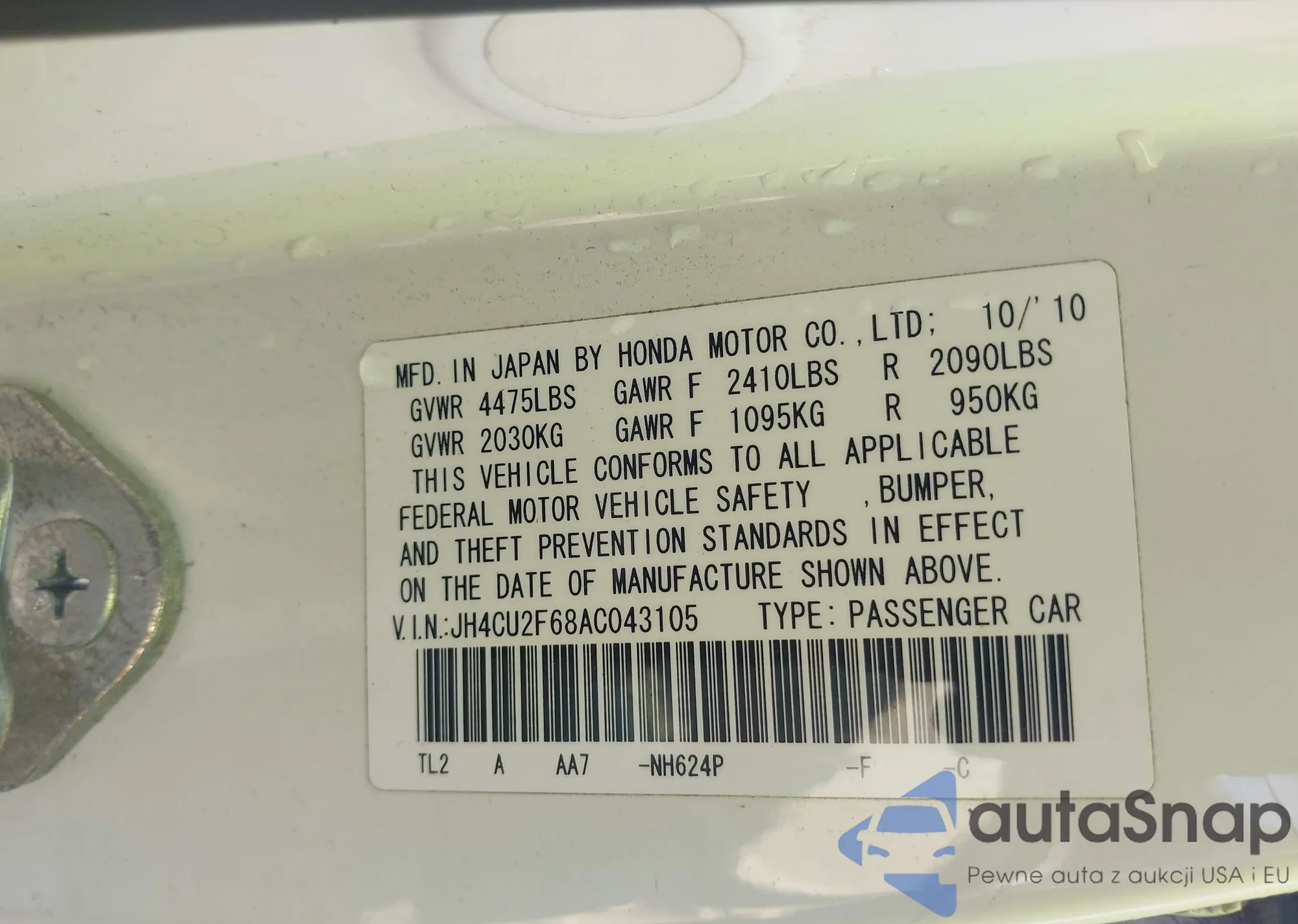 VIN: JH4CU2F68AC043105