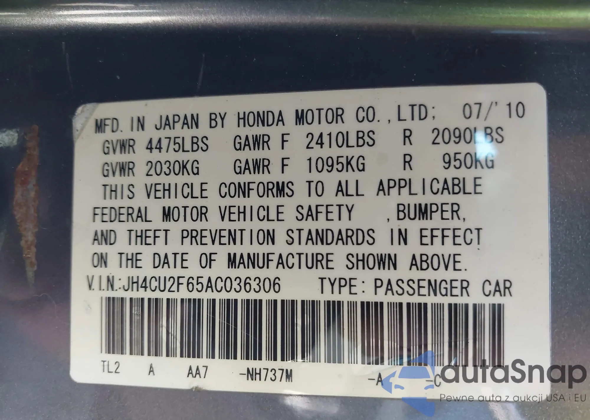 VIN: JH4CU2F65AC036306