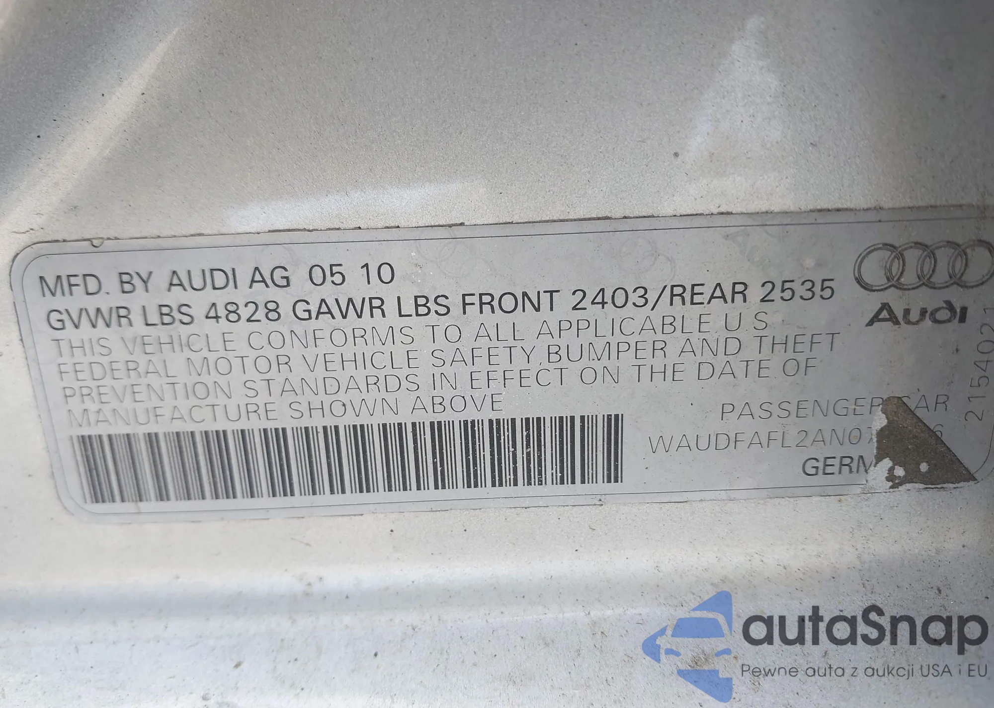 VIN: WAUDFAFL2AN070916