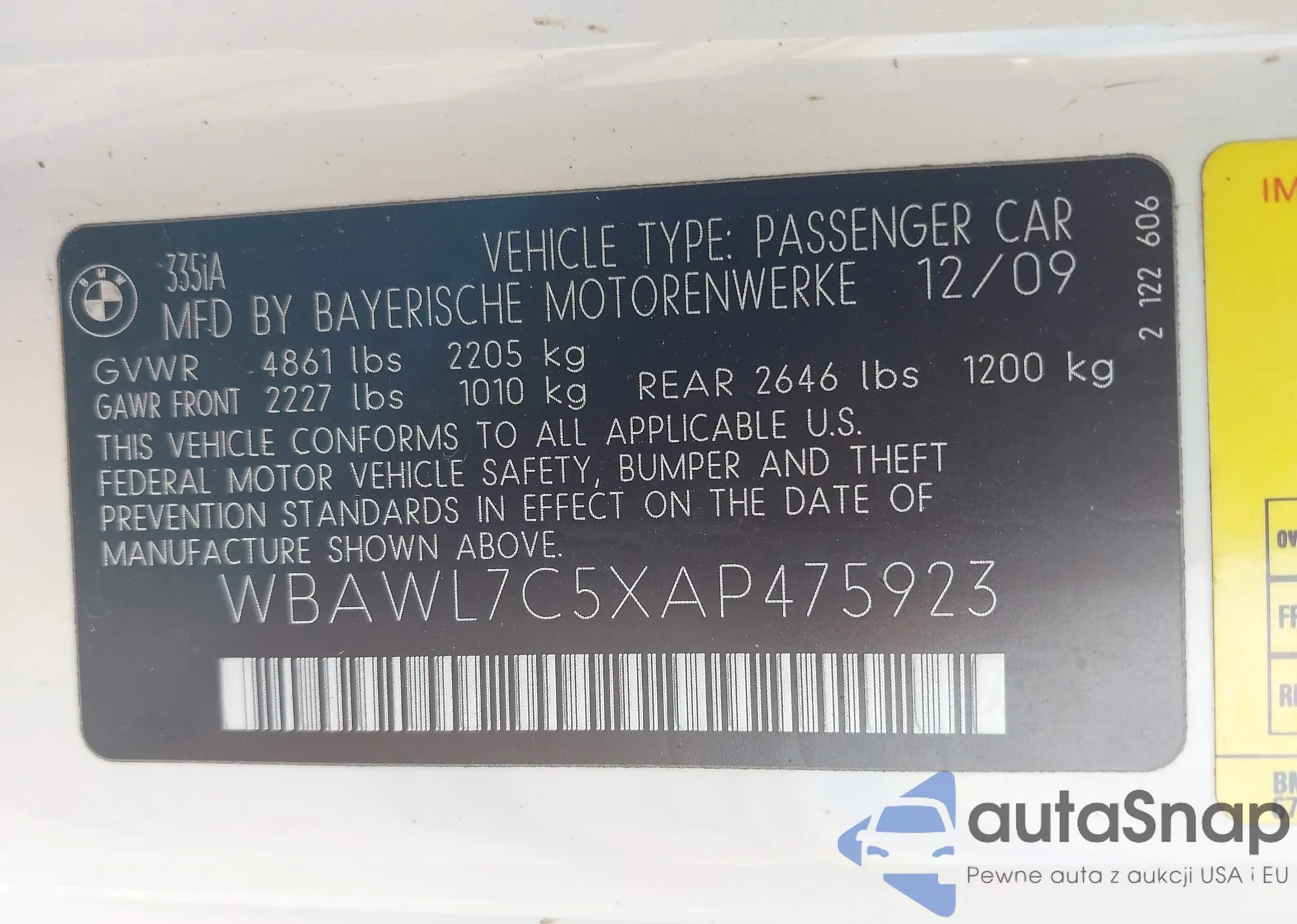 VIN: WBAWL7C5XAP475923