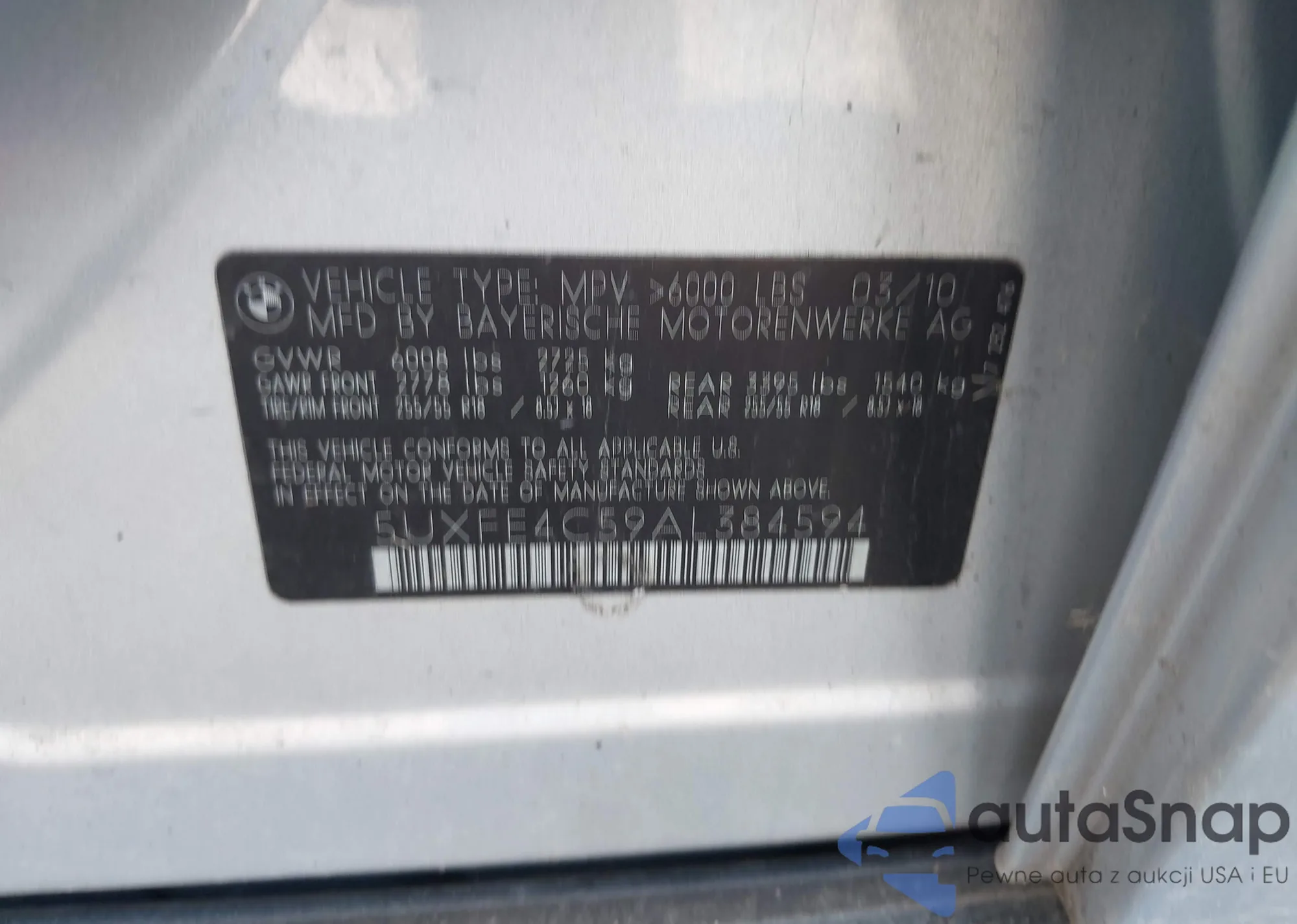 VIN: 5UXFE4C59AL384594