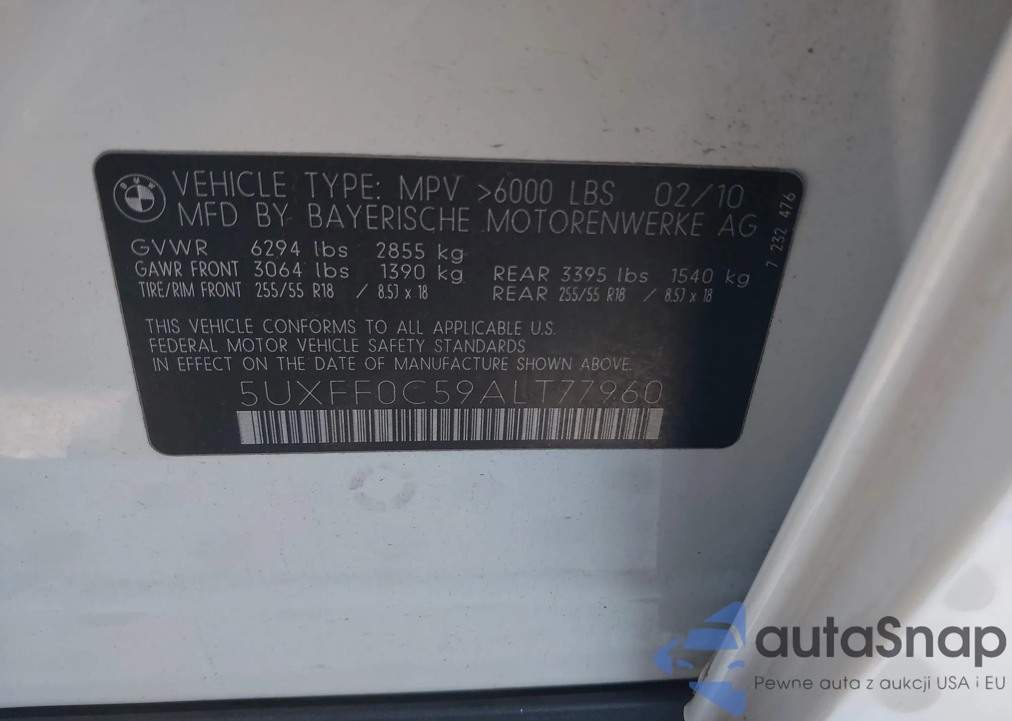 Автомобиль BMW X5 2010 (VIN 5UXFF0C59ALT77960) ранее не участвовал в торгах. Документы чистые, пробег соответствует или ниже среднего по рынку. Продаётся страховой компанией — рекомендуем покупку. Доставка в порт займет около 6–8 недель.