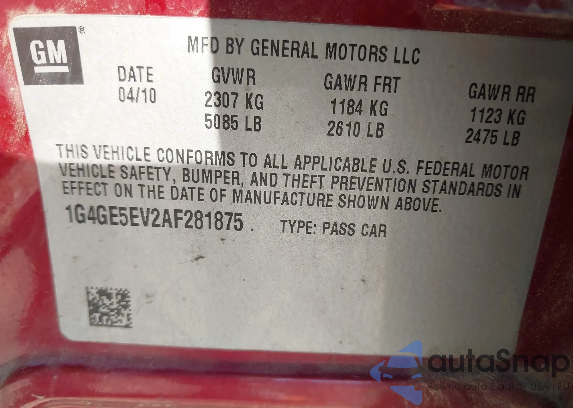 Автомобиль Buick LaCrosse 2010 (VIN 1G4GE5EV2AF281875) имеет документы, препятствующие регистрации. Могут возникнуть сложности при экспорте и регистрации. Обратитесь к экспертам AutaSnap для поиска альтернатив.