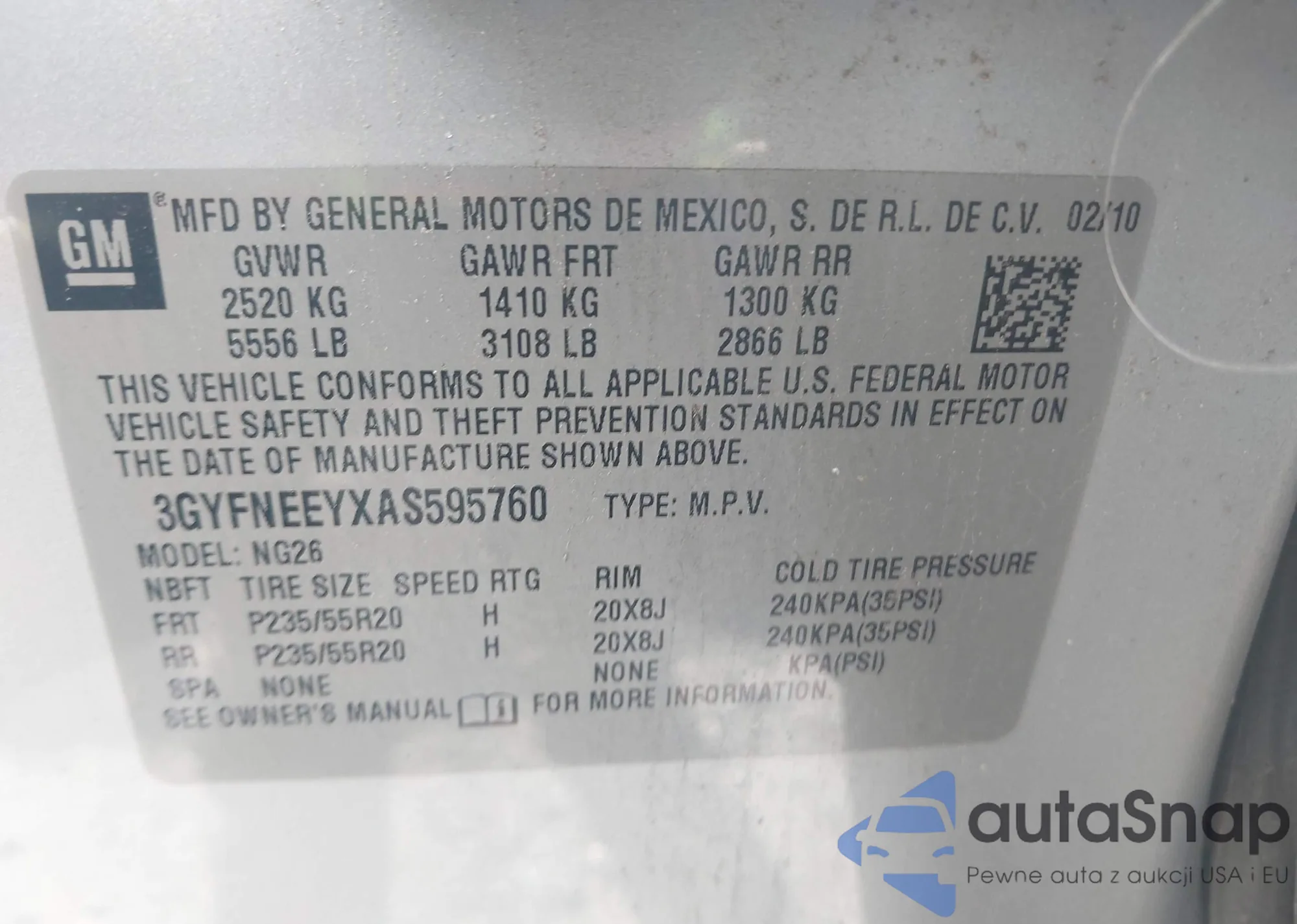 VIN: 3GYFNEEYXAS595760