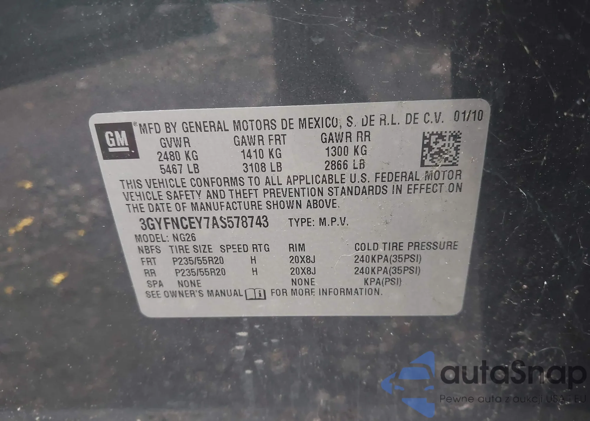 • VIN: 3GYFNCEY7AS578743
