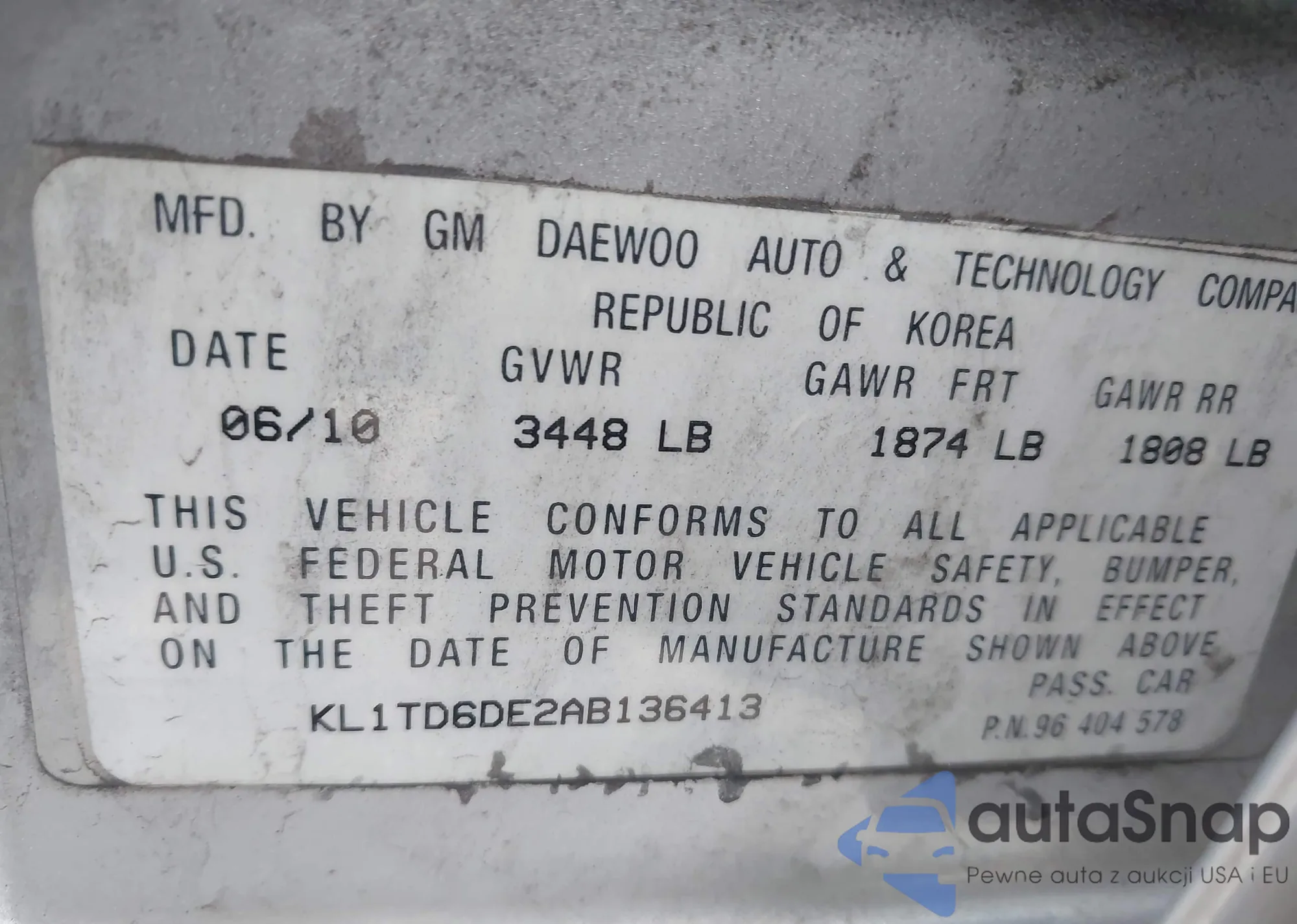VIN: KL1TD6DE2AB136413