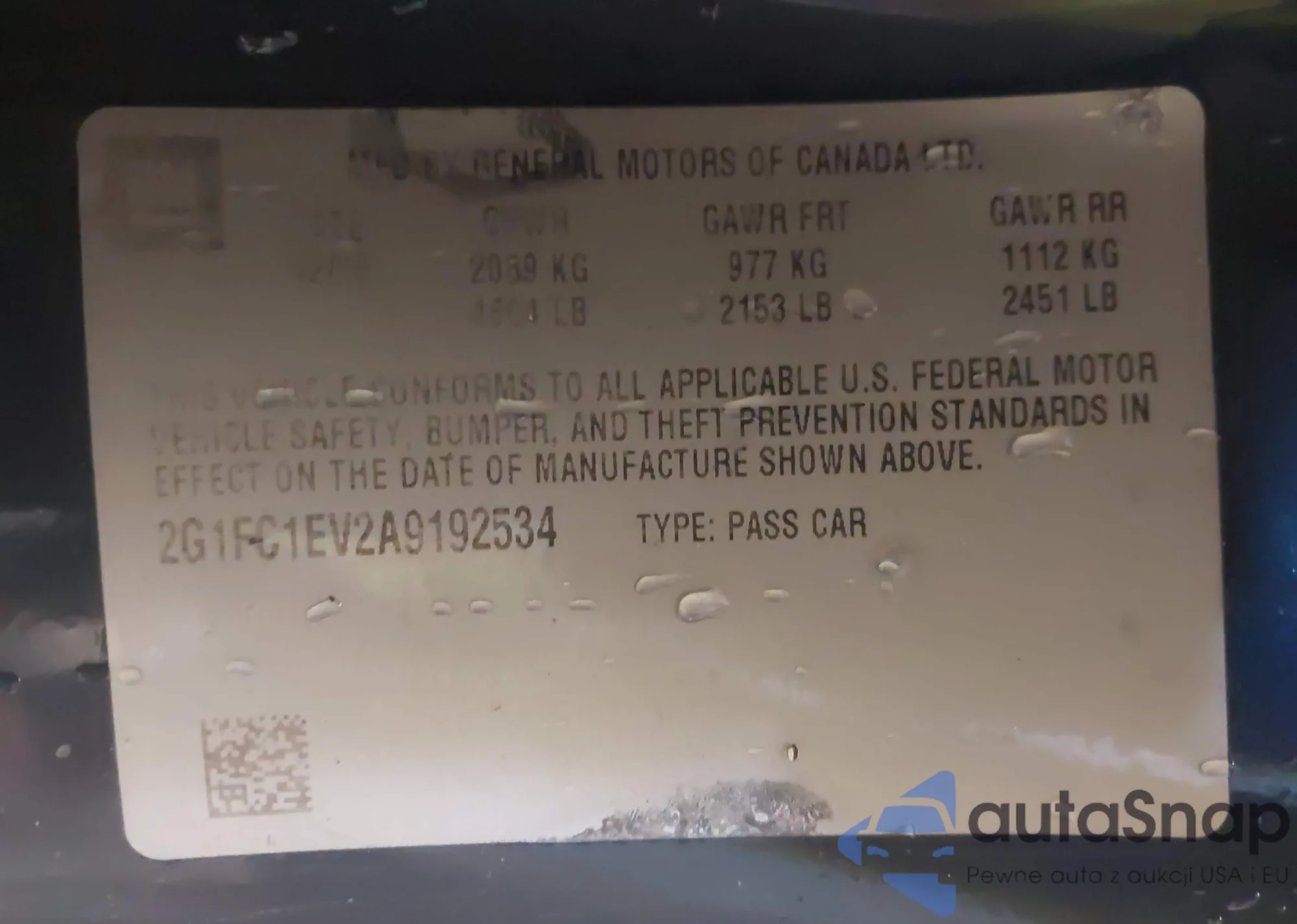 VIN: 2G1FC1EV2A9192534