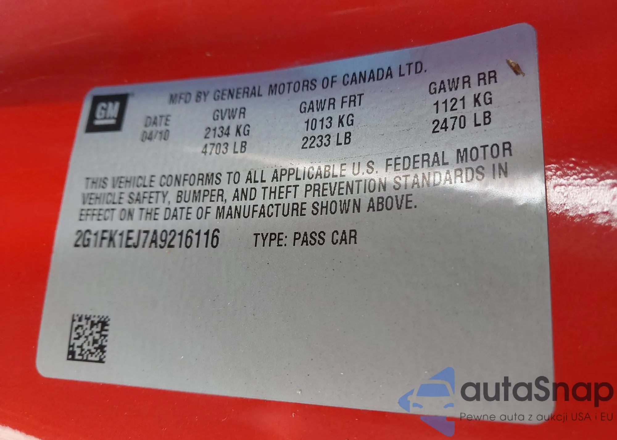 Автомобиль Chevrolet Camaro 2010 (VIN 2G1FK1EJ7A9216116) ранее не участвовал в торгах. Документы чистые, пробег соответствует или ниже среднего по рынку. Продаётся страховой компанией — рекомендуем покупку. Доставка в порт займет около 6–8 недель.