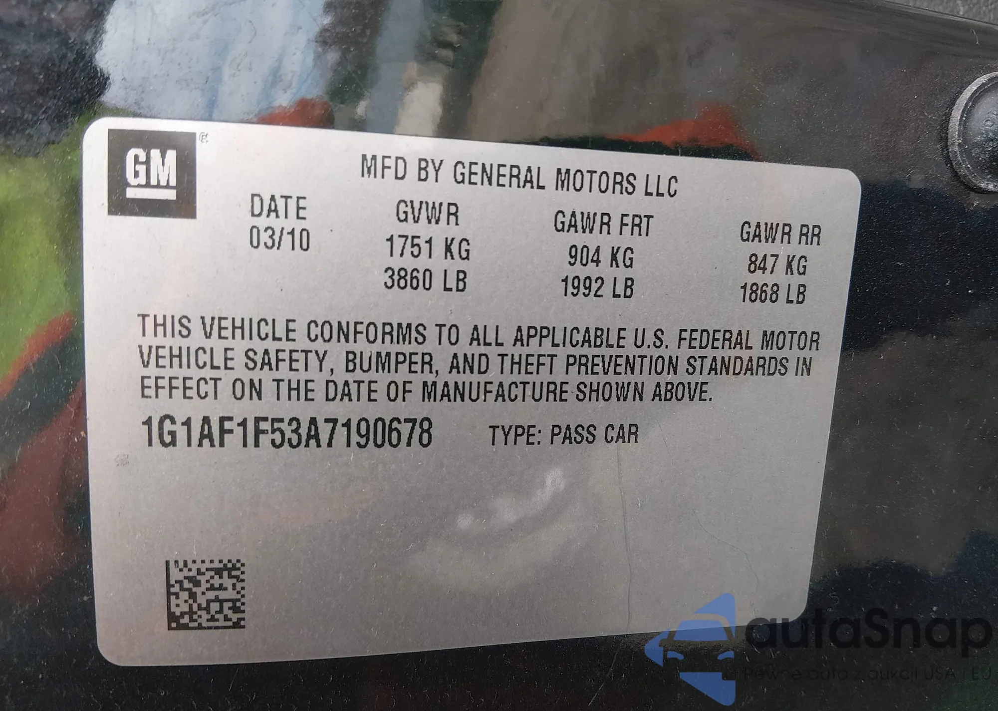 • VIN: 1G1AF1F53A7190678