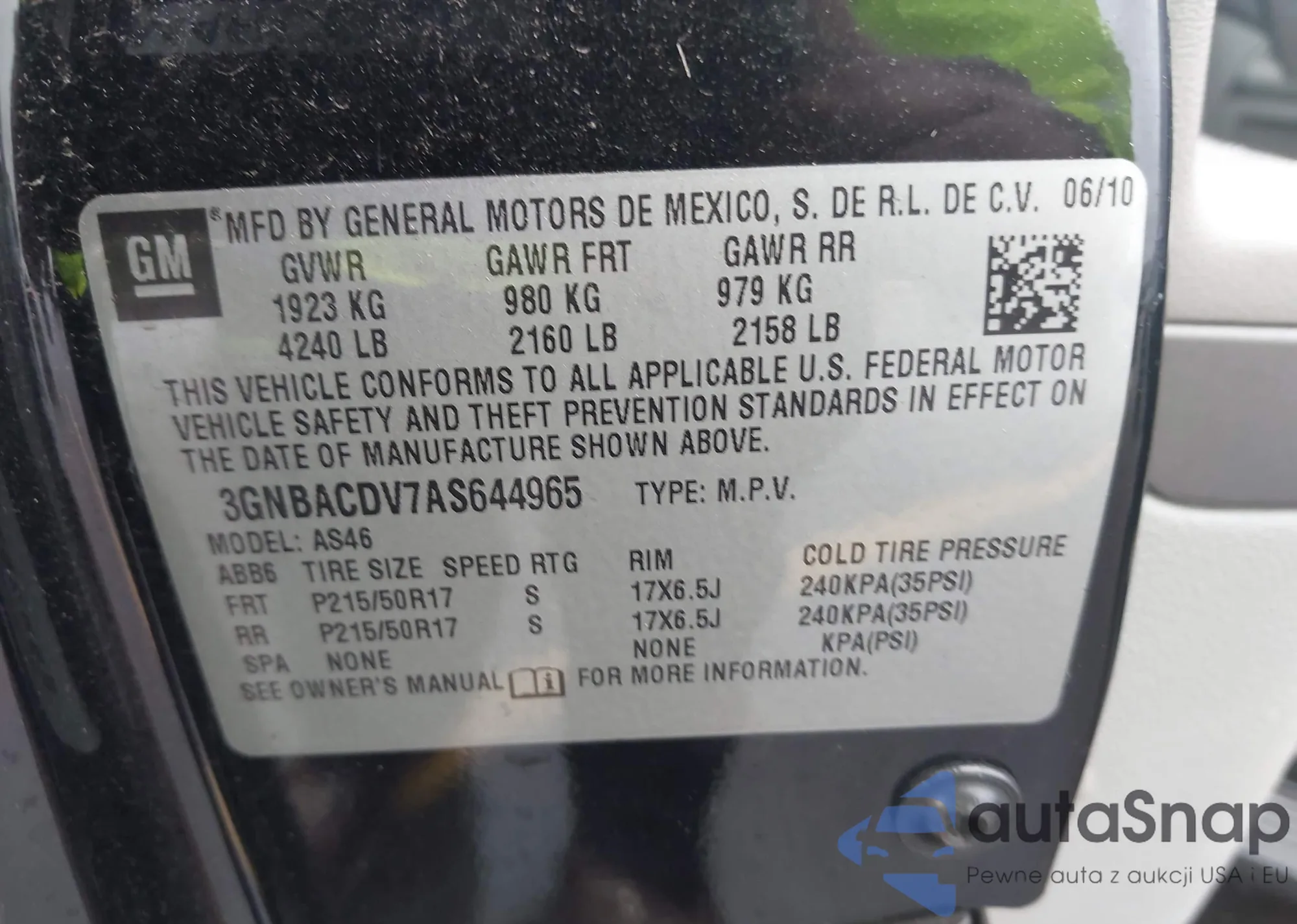 • VIN: 3GNBACDV7AS644965