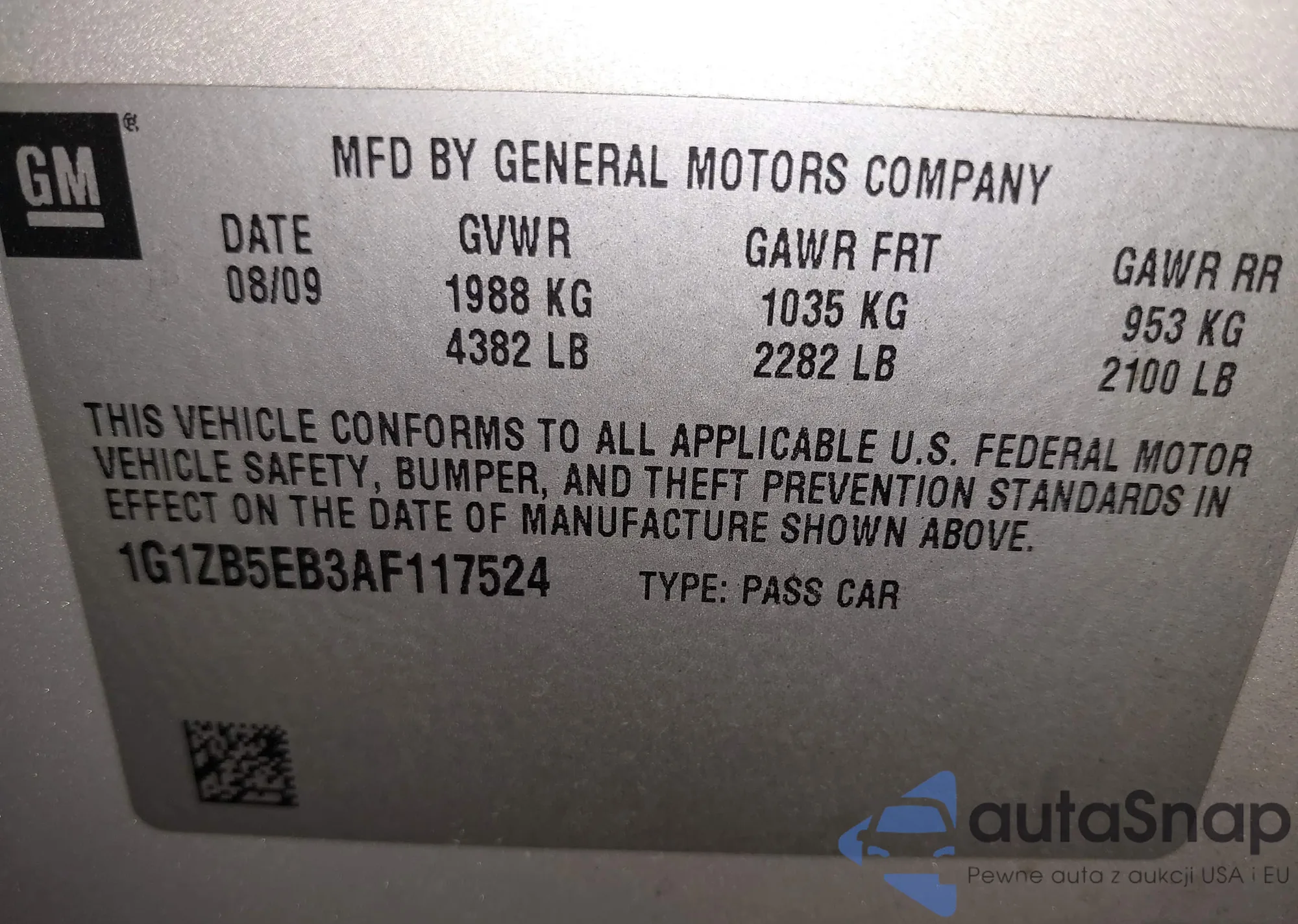 VIN: 1G1ZB5EB3AF117524