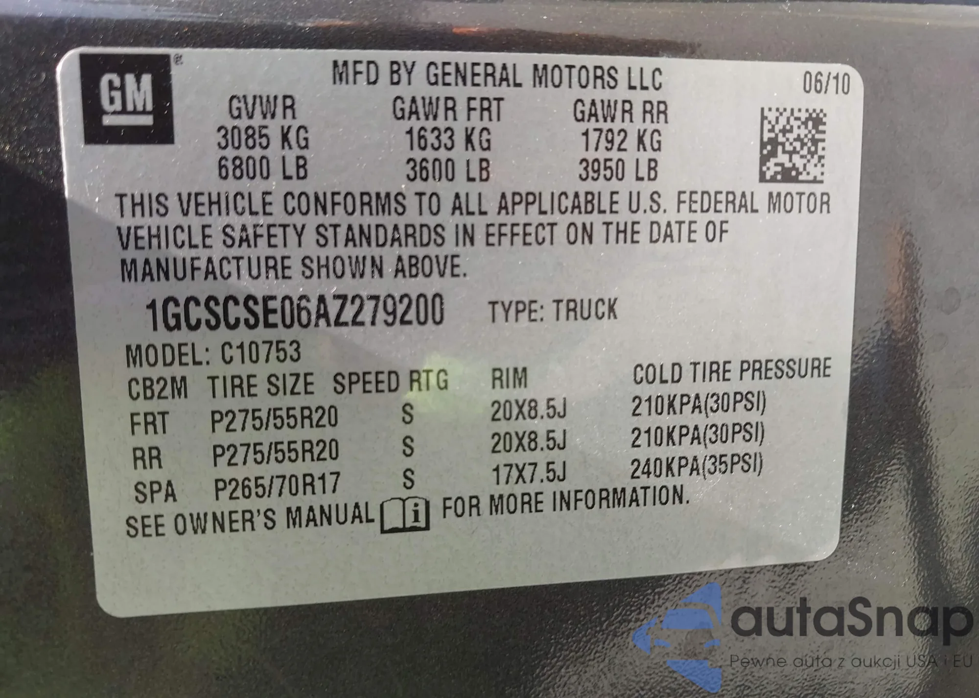 VIN: 1GCSCSE06AZ279200