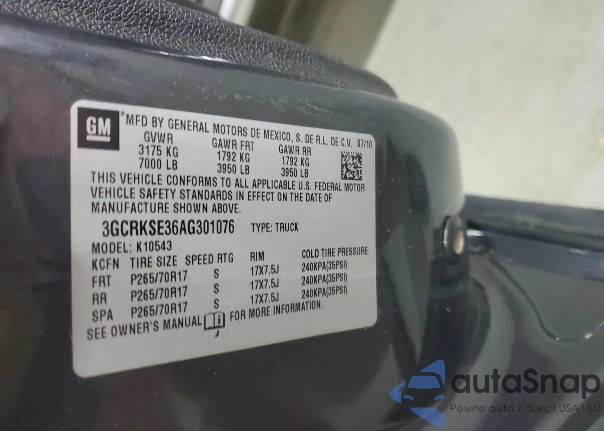 VIN: 3GCRKSE36AG301076