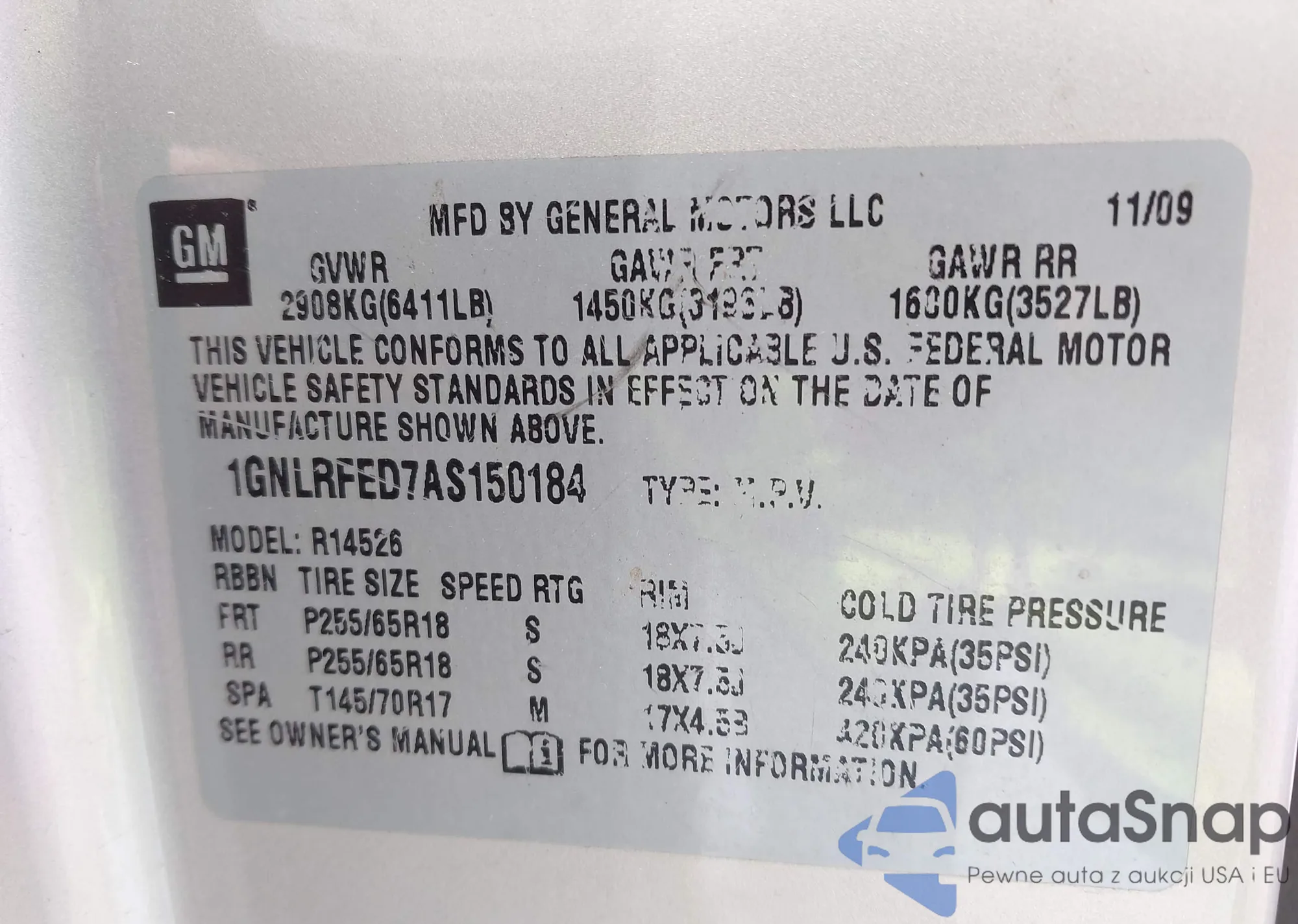 VIN: 1GNLRFED7AS150184
