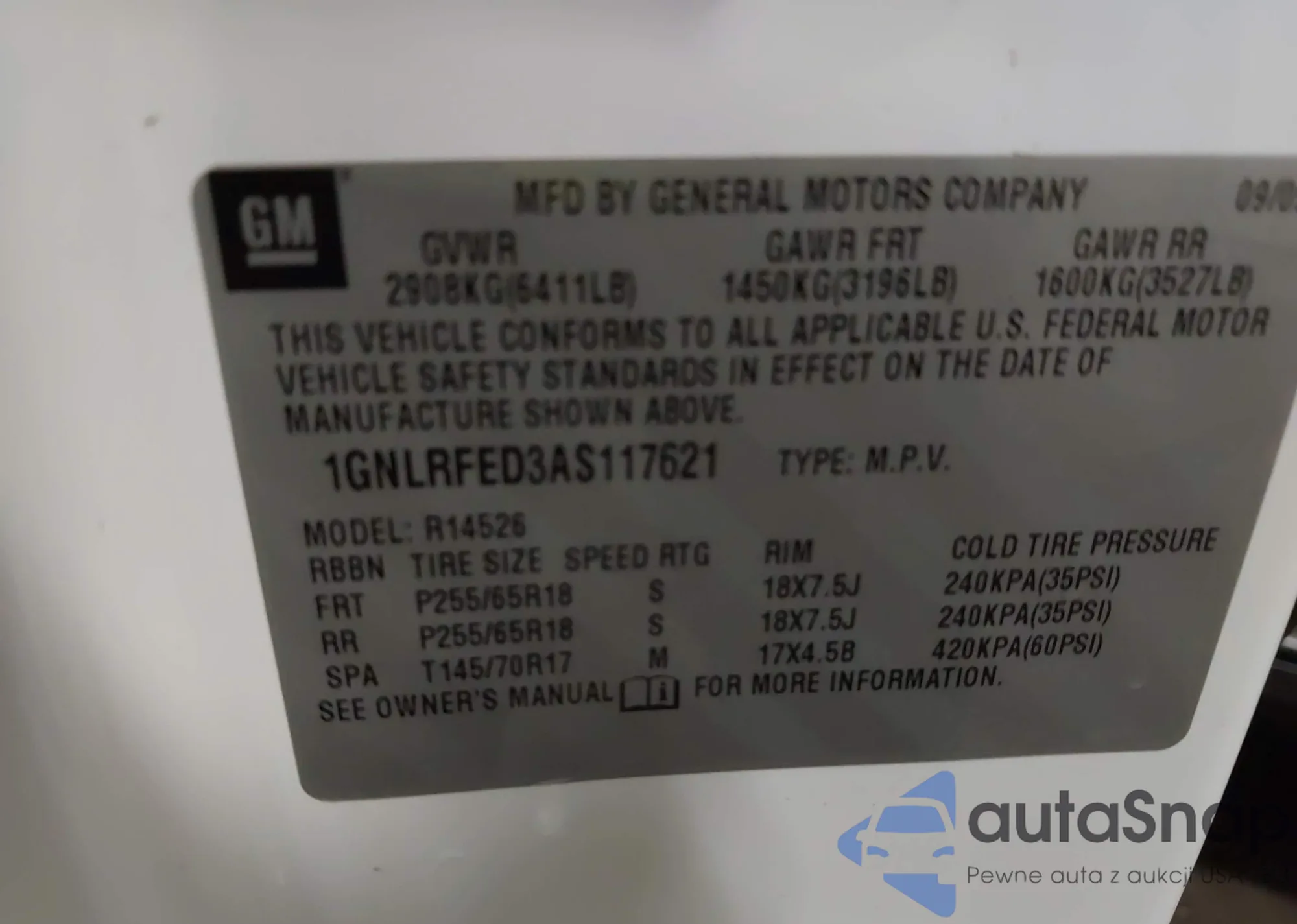 VIN: 1GNLRFED3AS117621
