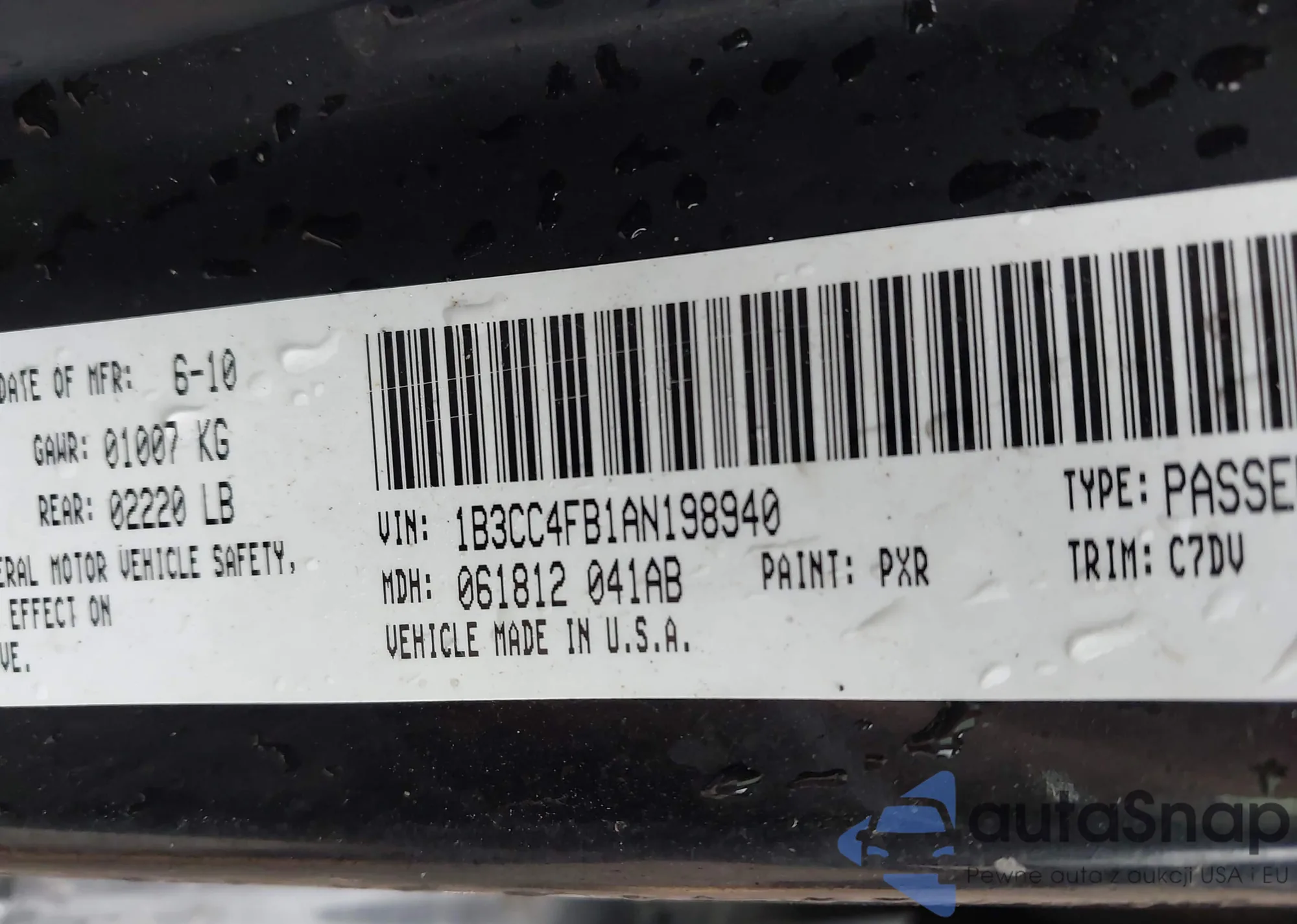 VIN: 1B3CC4FB1AN198940