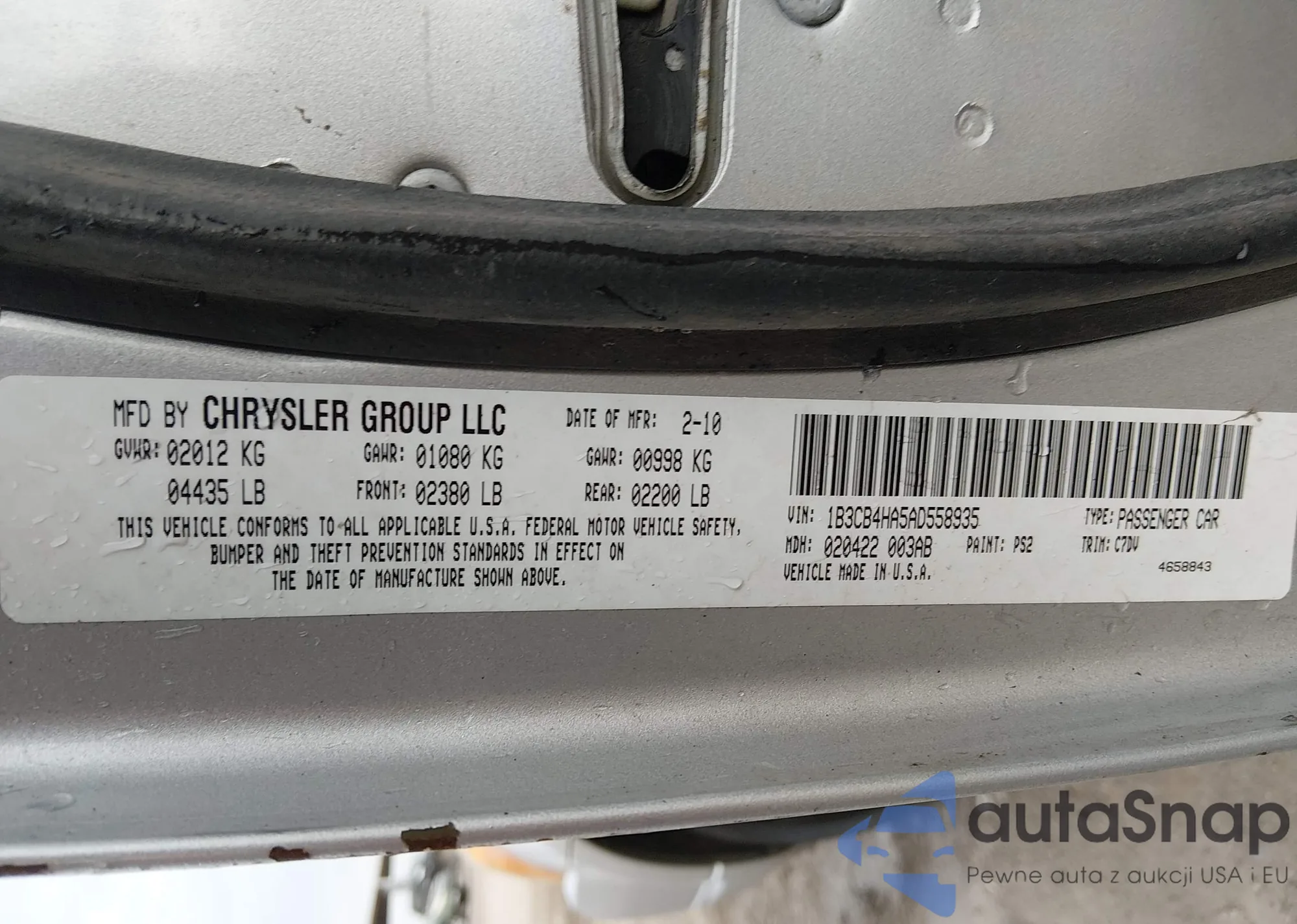 Автомобиль Dodge Caliber 2010 (VIN 1B3CB4HA5AD558935) ранее не участвовал в торгах. Документы чистые, пробег соответствует или ниже среднего по рынку. Продаётся страховой компанией — рекомендуем покупку. Доставка в порт займет около 6–8 недель.